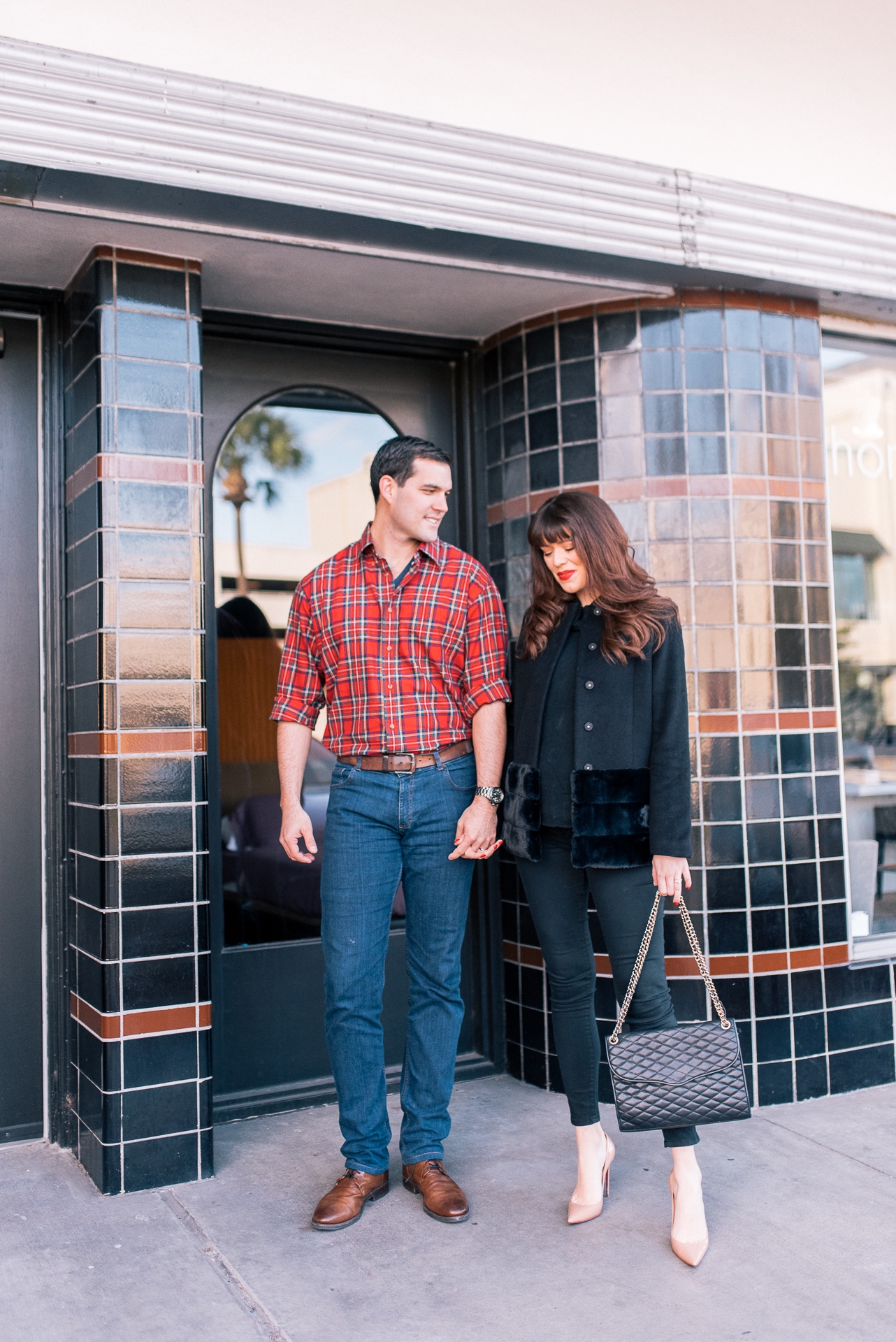 Since living in Houston we definitely have a few areas that are our go to spots to enjoy these holiday memories. One in particular that we love is River Oaks Shopping Center. This historic and retro- inspired shopping strip is truly magical this time of year. Here are a few things/ spots in River Oaks Shopping Center that we love and would recommend checking out for your holiday date nights this year if you are located in the Houston area: