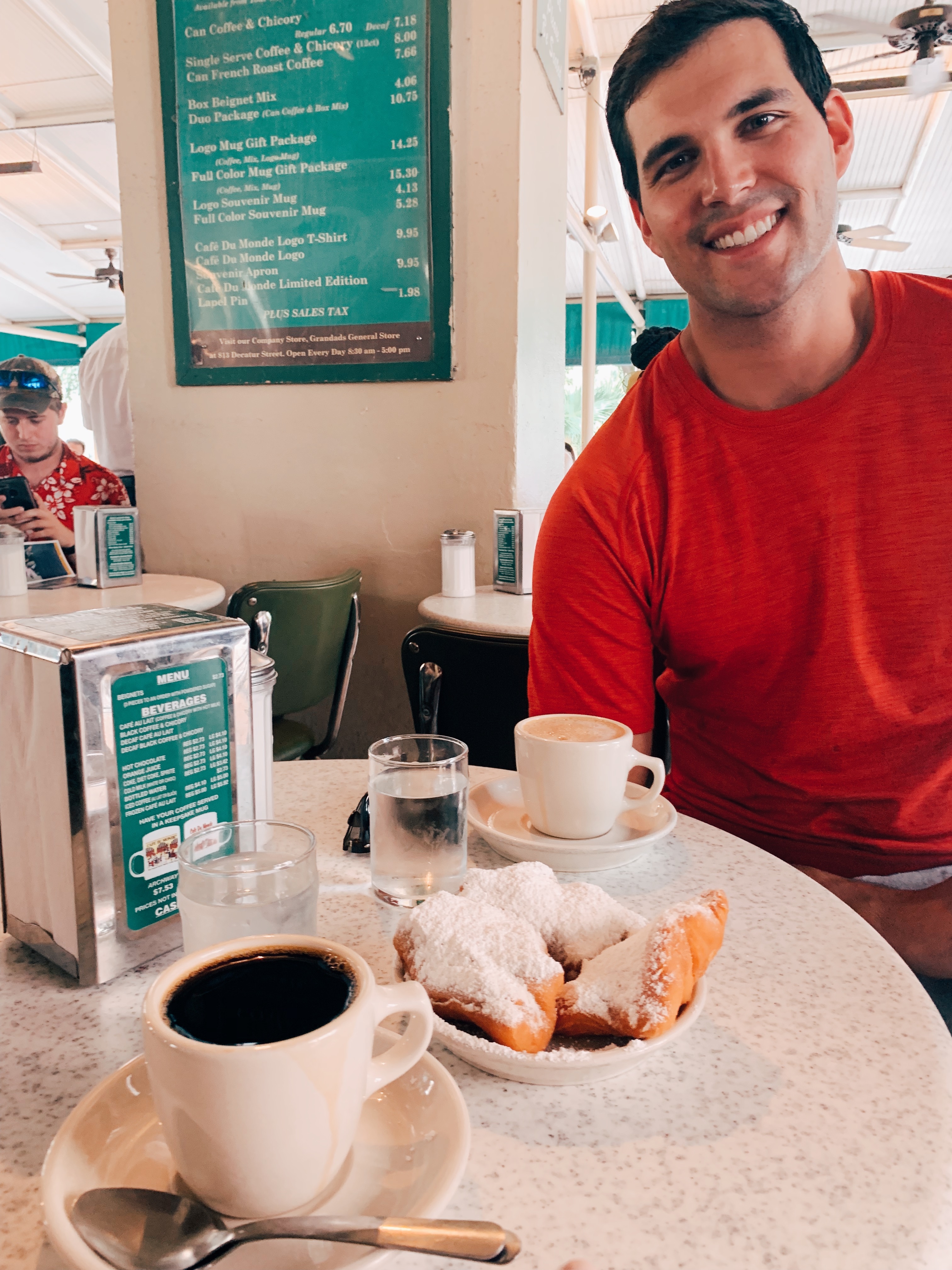 A trip to NOLA would not be complete without a stop into Cafe Du Mode for beignets and coffee. This was my first time visiting and it was super fun!