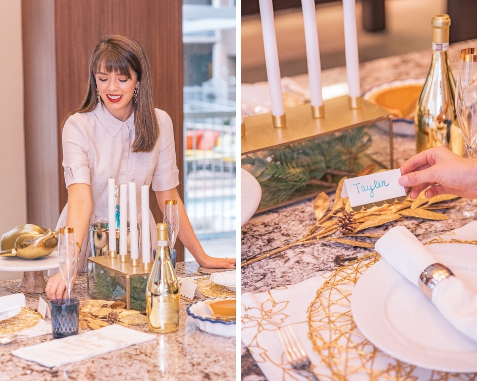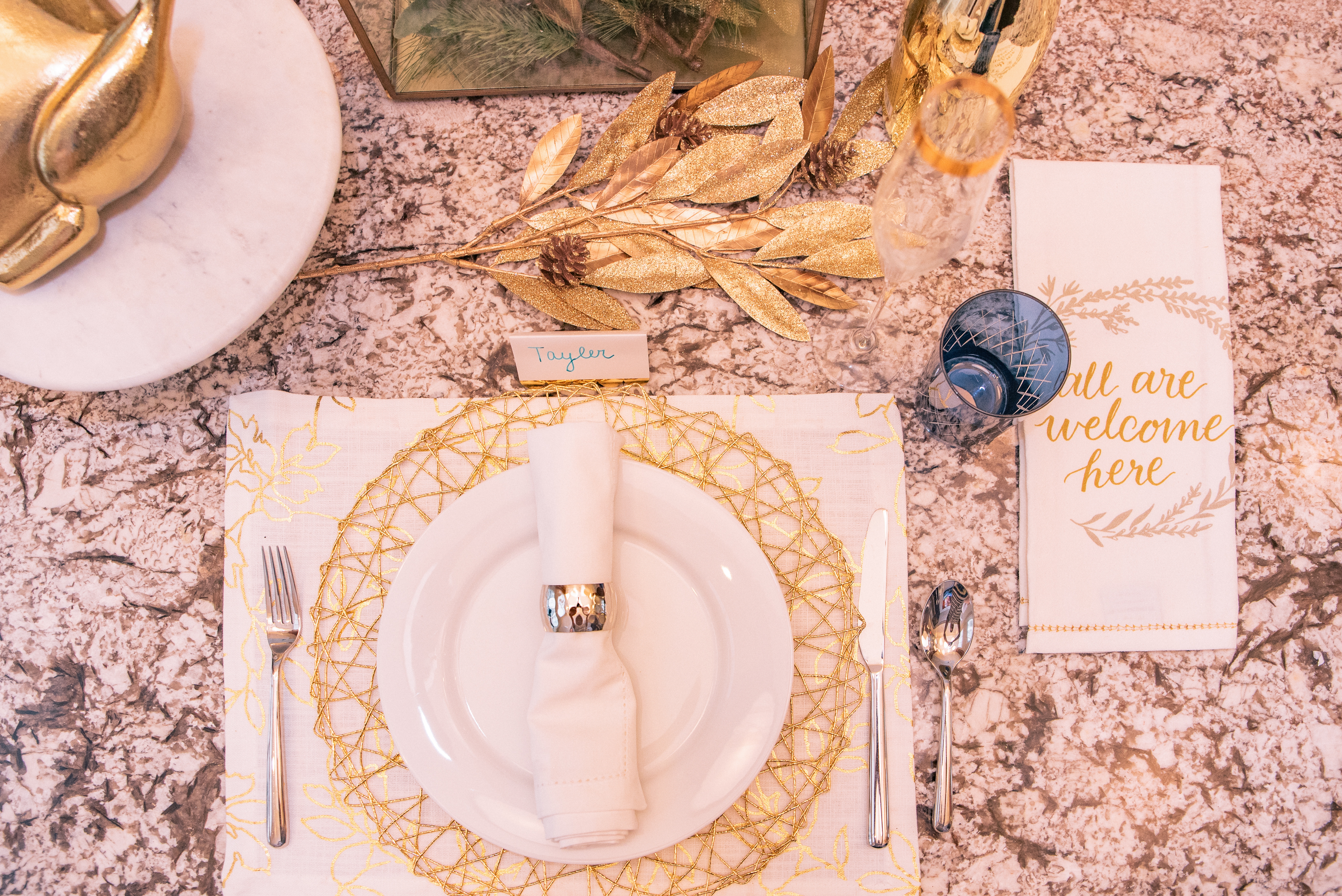 This is such a fun way to make your guests feel welcomed and special. Letting them know that they have a seat at your table. I picked up these gorgeous gold trimmed place cards recently from target and can’t wait to use them throughout the holiday season .