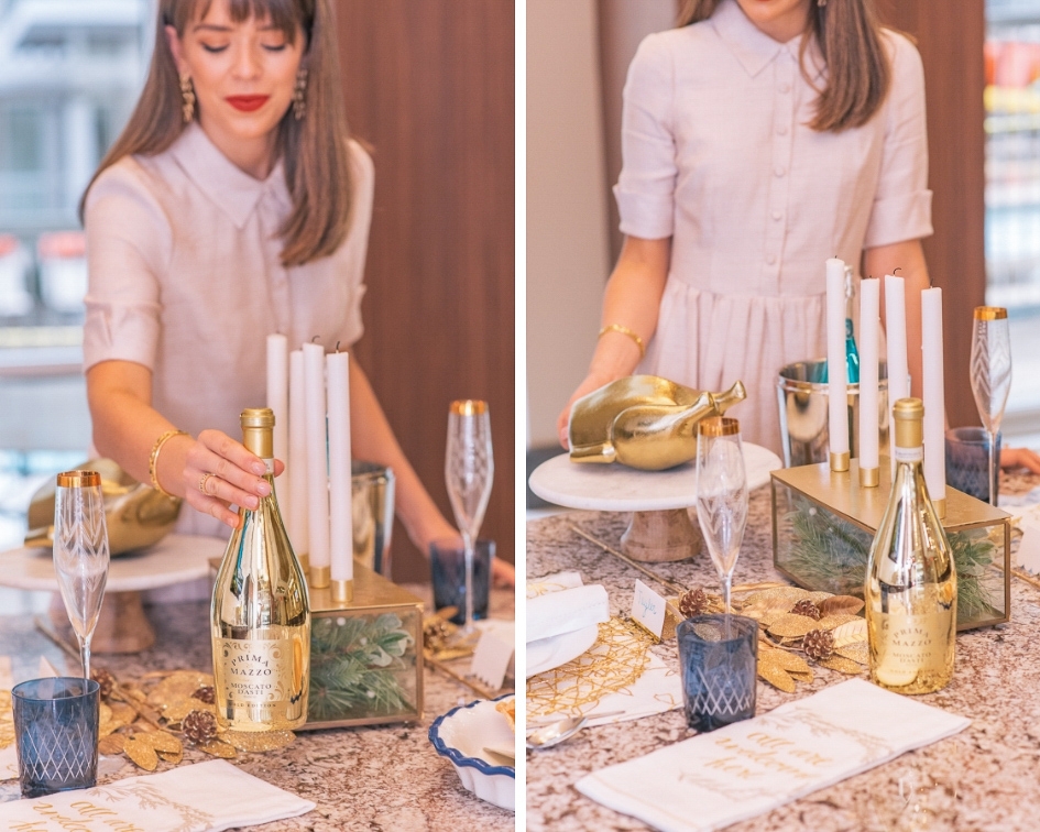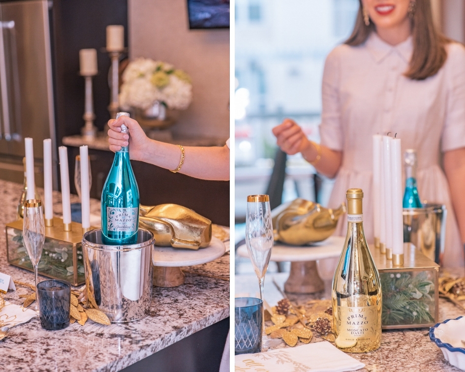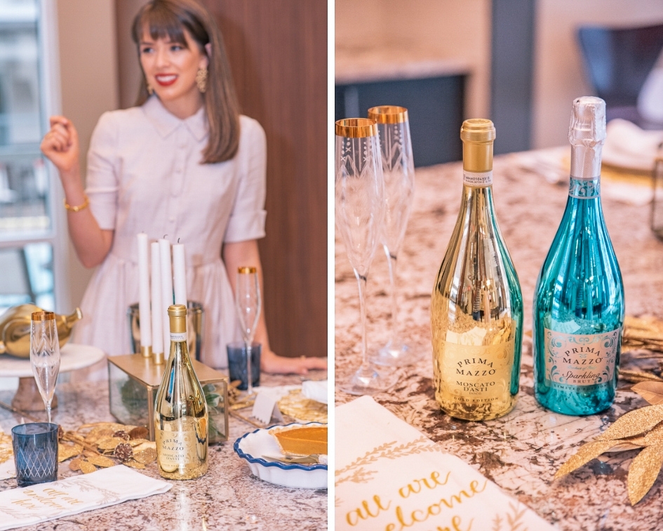 Lastly, nothing says holiday party more than a beautiful bottle of Prima Mazzo Wine. Prima Mazzo has several different kinds of Italian made wine, but my two holiday favorites to celebrate with are the Moscato D’asti Gold Edition and the Sparkling Brut Limited Edition. Not only are the bottles holiday showstoppers but most importantly they have beautiful flavors. As a wine lover, these are truly some of my favorite bottles to bring to the table. I could not recommend them more for your holiday entertaining.