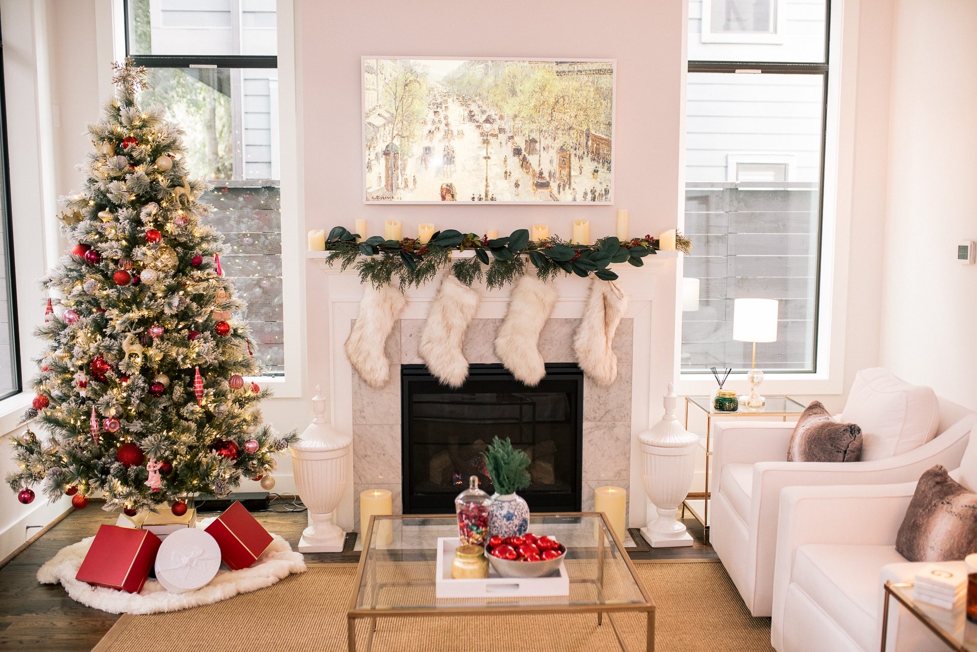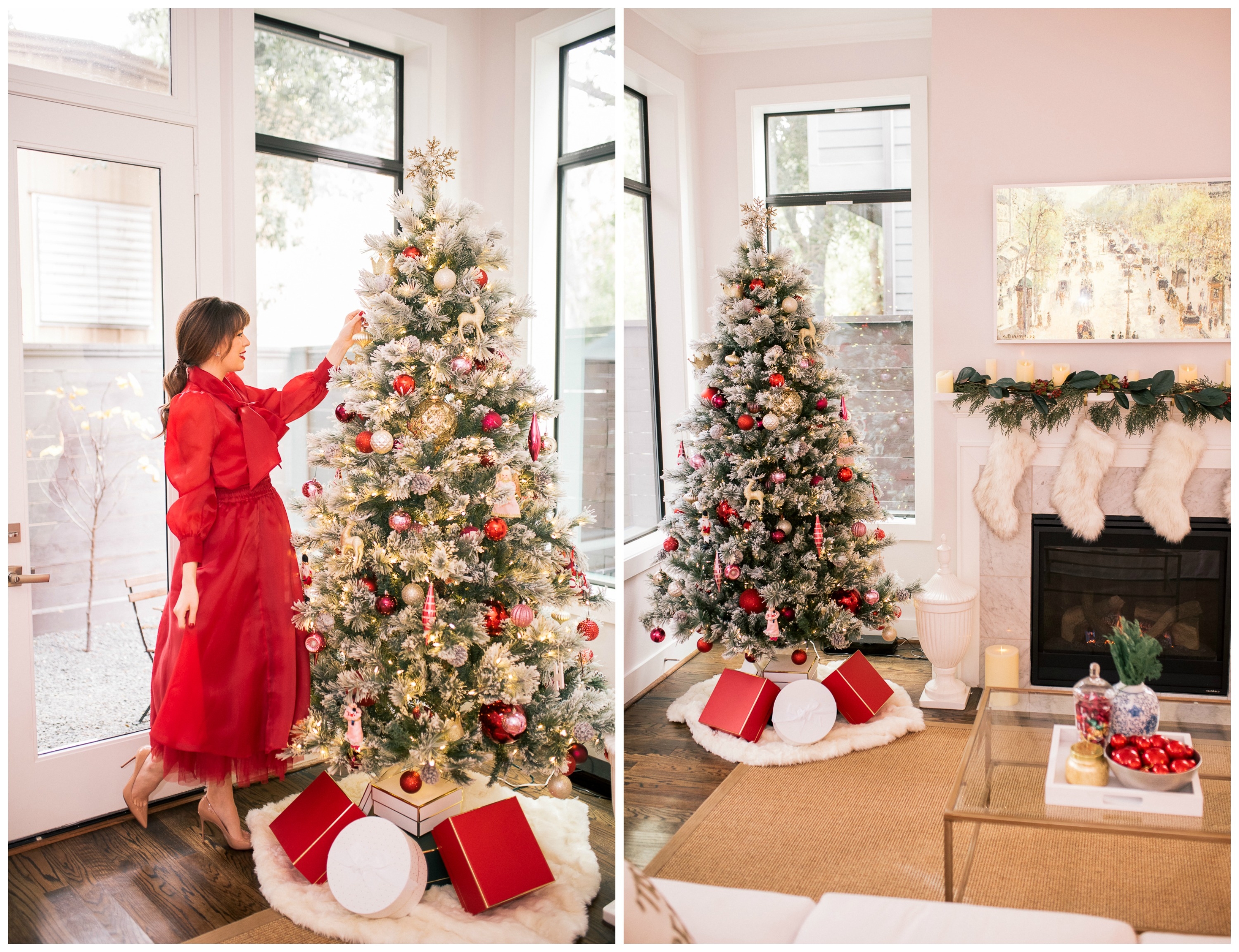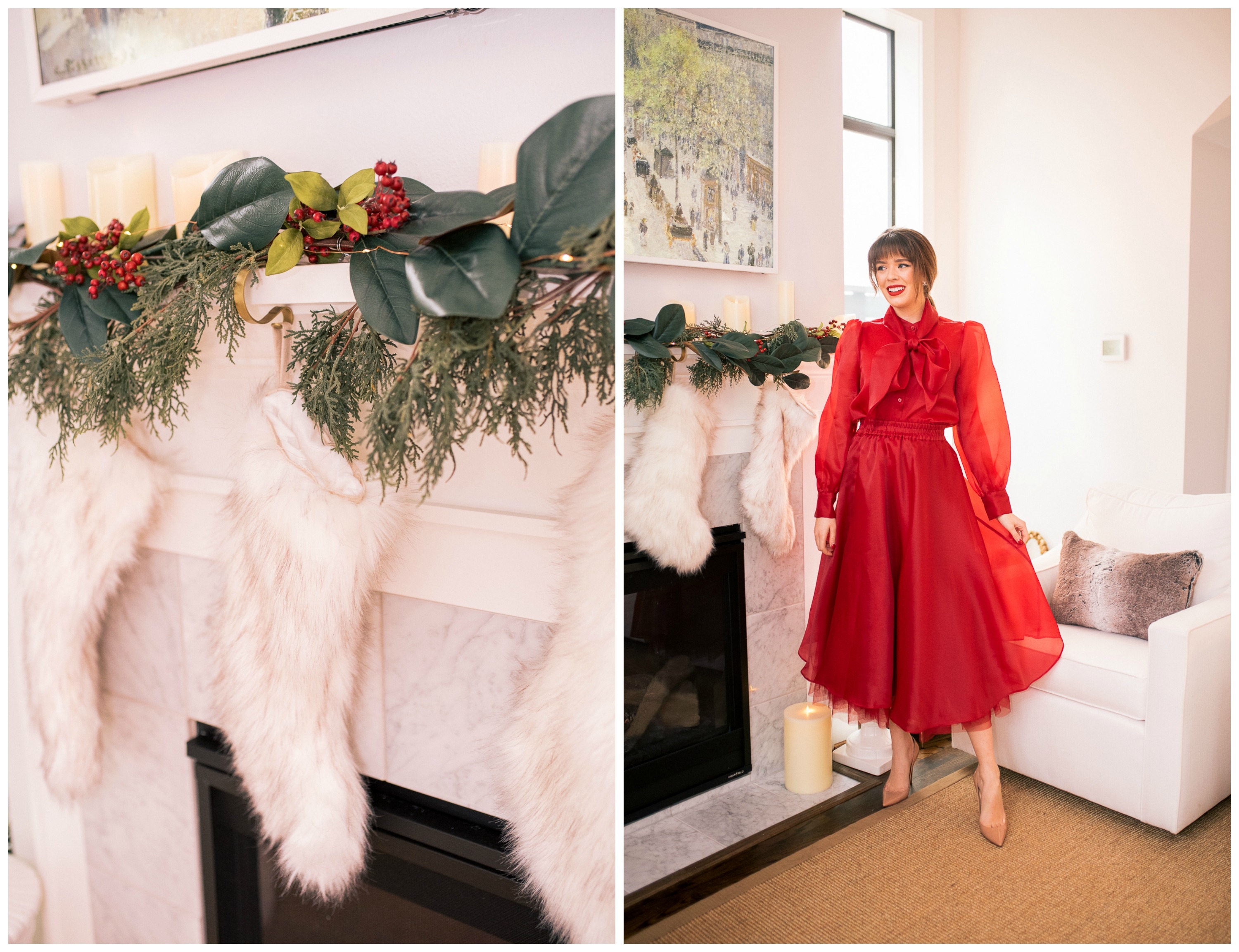 I am so excited to finally share with you a look at our classic holiday home decor. This first Christmas in our new home has already been so sweet. When planning our holiday decor, I wanted to go the classic route. Filling our space with colors and decor that reminded me of a cozy Christmas cottage, or something you might see in an old Christmas movie. Going with reds, greens, warm faux fur items, wreaths on the windows, and a tree that takes you back in time to your childhood. So without further a do, here is a look at my classic holiday home decor.