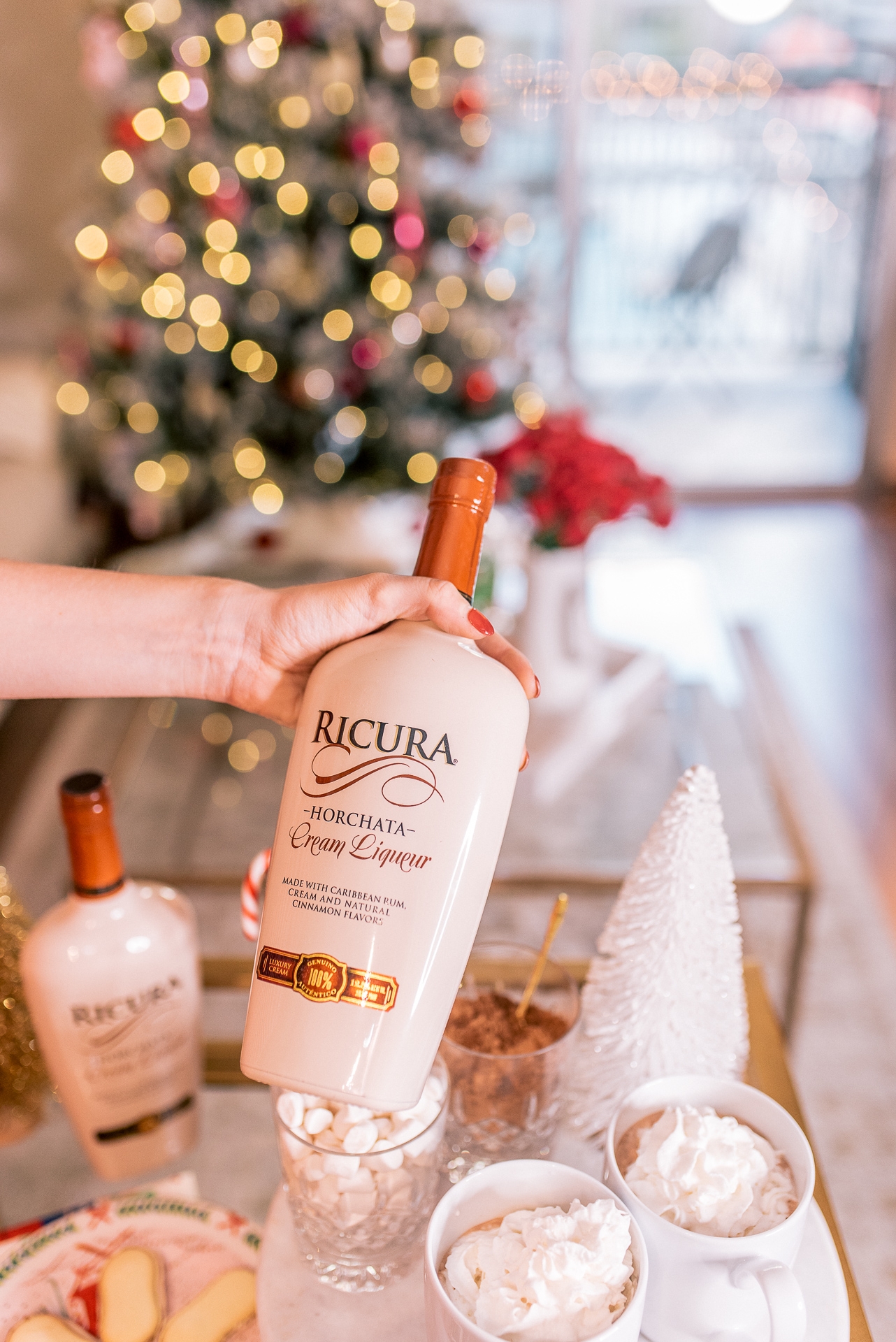 Making hot chocolate during Christmas time is truly one of our favorite traditions. It the perfect holiday drink to make as you are curled up by the fire place or hosting a fun holiday get together. This drink is a crowd pleaser, trust me! With the delicious combination of the finest Caribbean rum with cream and natural cinnamon flavor, Ricura truly adds the perfect twist to my homemade hot chocolate recipe. Also, my favorite part is that it is half the fat of a regular cream liqueur and twice the flavor! Hunter and I can’t get enough of it this holiday season and I know after you try this you will be the same way! Cheers!