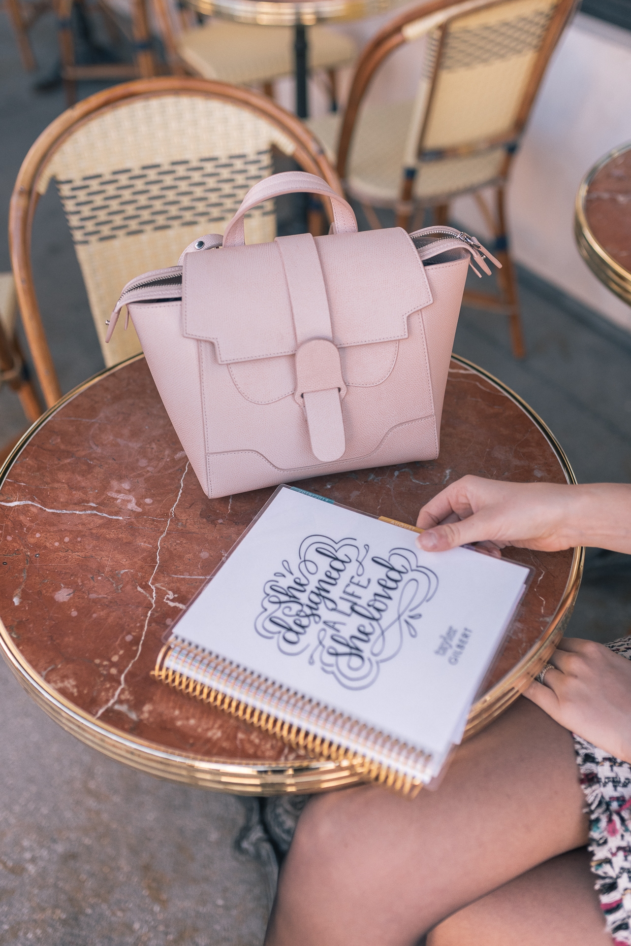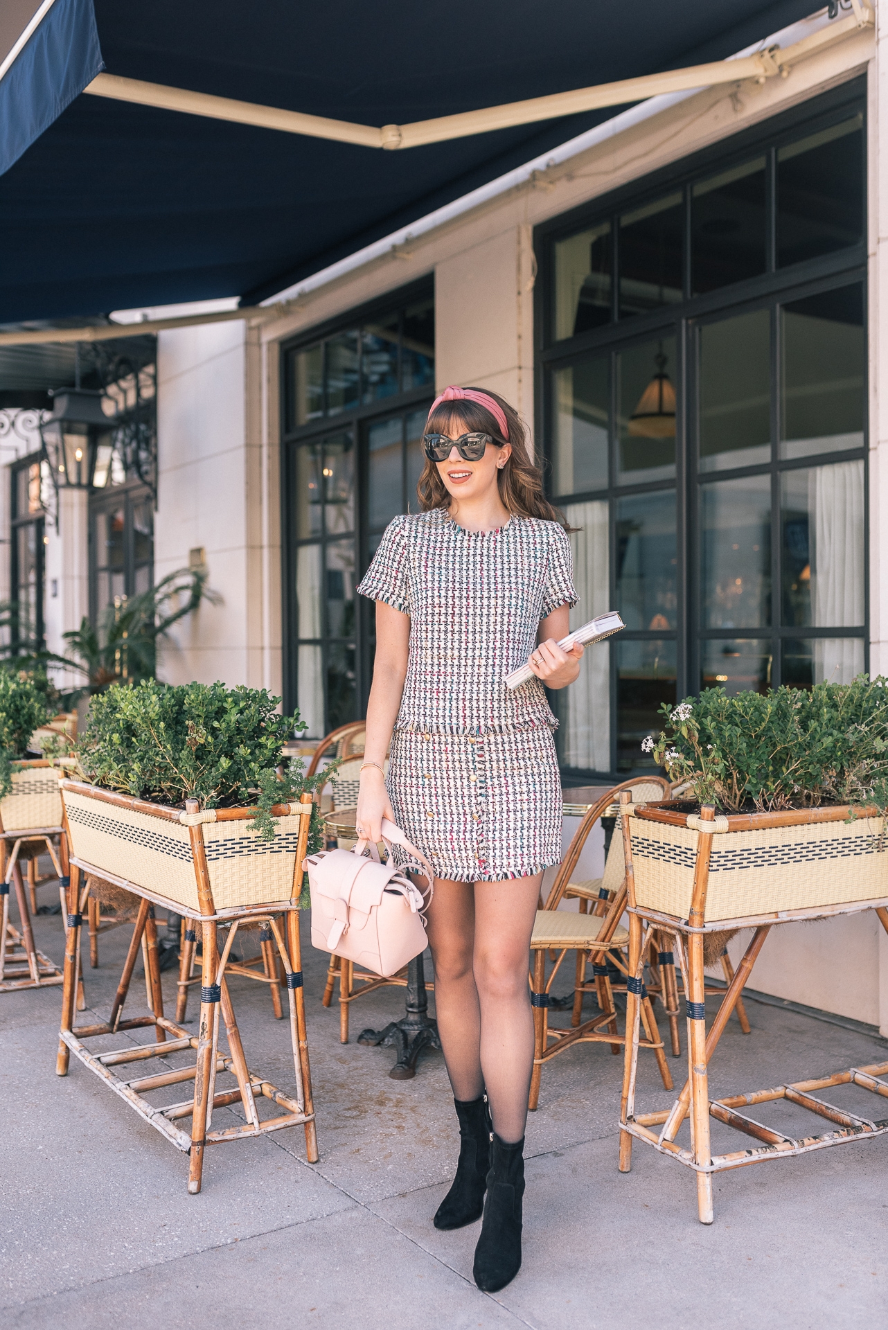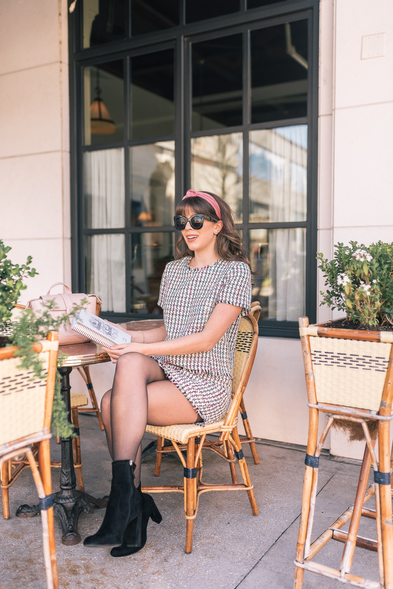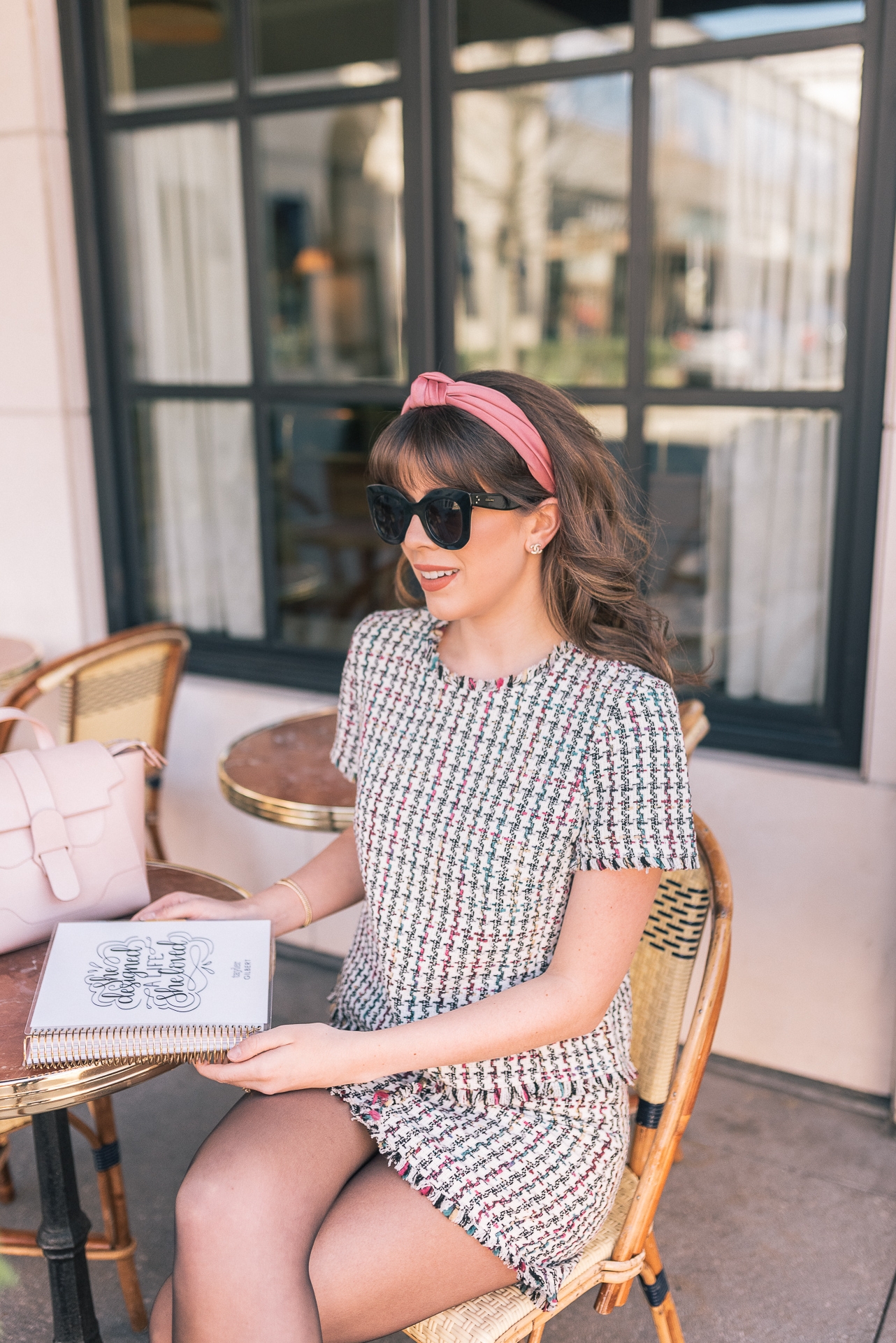 Planner: Erin Condren | Houndstooth Top: Shopbop | Houndstooth Skirt: Shopbop | Tights: Shopbop | Booties: Steve Madden | Bag: Senreve | Headband: J.Crew | Sunnies: Celine