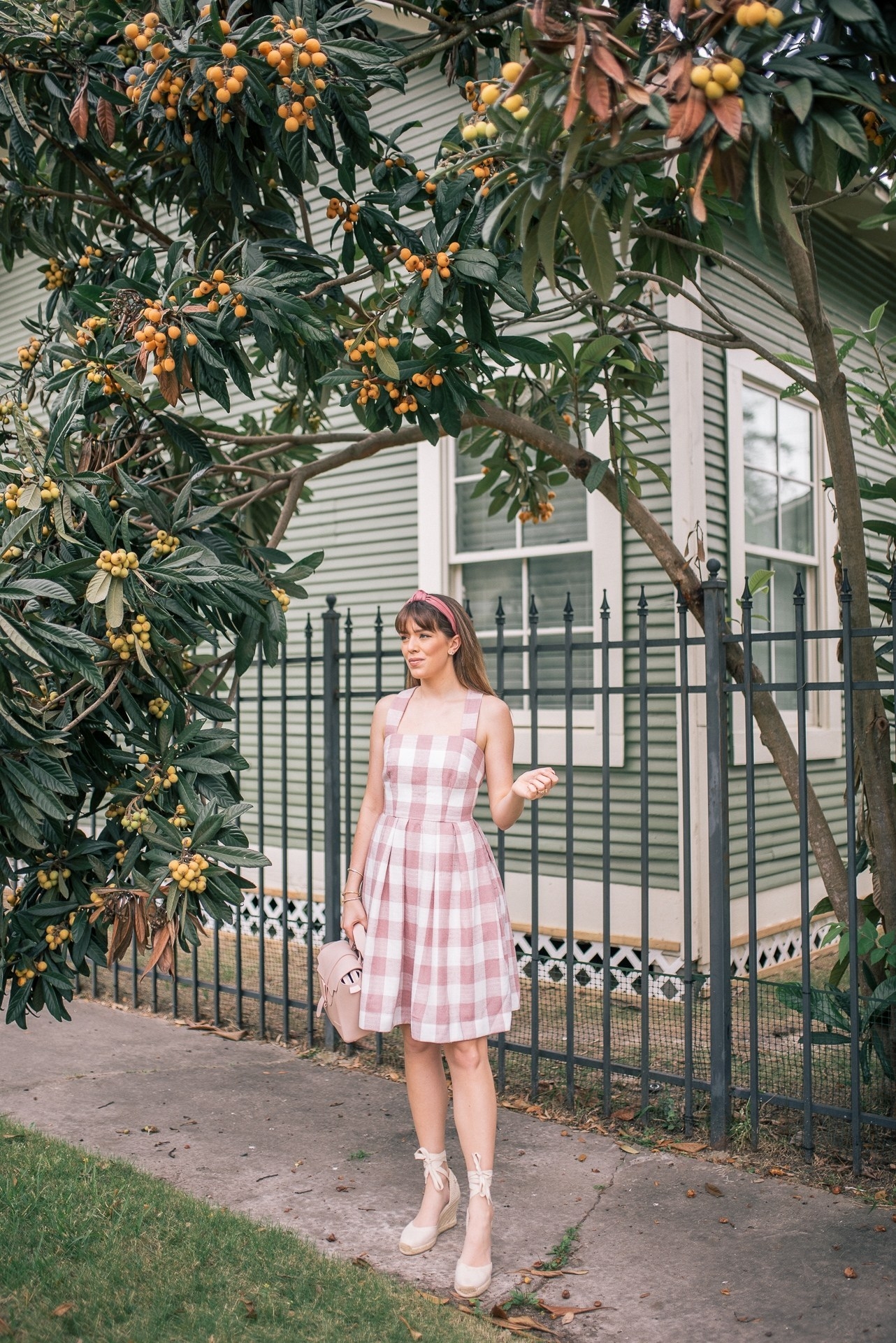 The Polly dress is truly one of my all time favorite GMG dresses. From the gingham print to the full skit it creates the most beautiful vintage look. ( Size: Size down, I’m wearing a 0 )