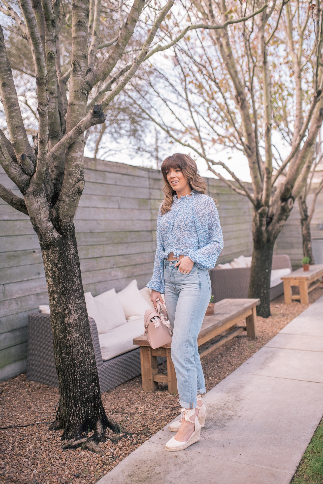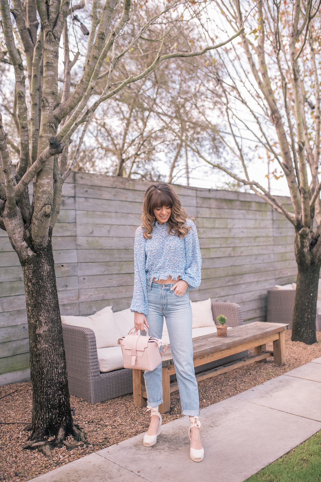 Blouse: Shopbop | Jeans: Madewell | Espadrille Wedges: Shopbop | Bag: Senreve | Lip Color: Tom Ford ( Color- Blush Nude)