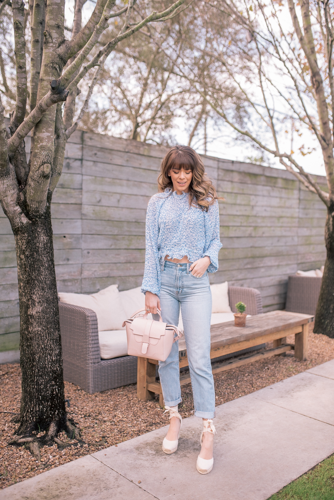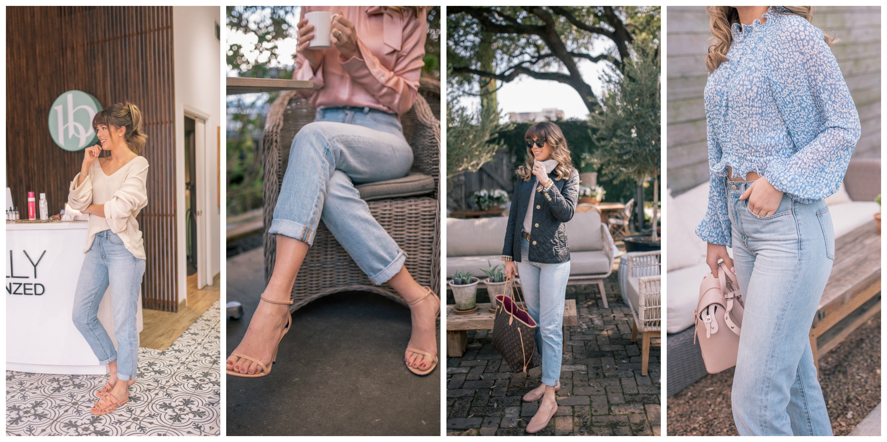You may recognize these jeans from previous blog and Instagram posts because if I am honest, I have been wearing them none stop. They have been the best transitional piece going into these warmer months. From the light wash color to the 11in high rise these truly are the best vintage jeans. As you can see above they are easily worn down with a sweater or tee and also easily dressed up with a beautiful blouse and heels. The fit is true to size and come in petite, regular, tall and curvy. I will warn you that they are bit a snug at first but break in perfectly after a few wears.