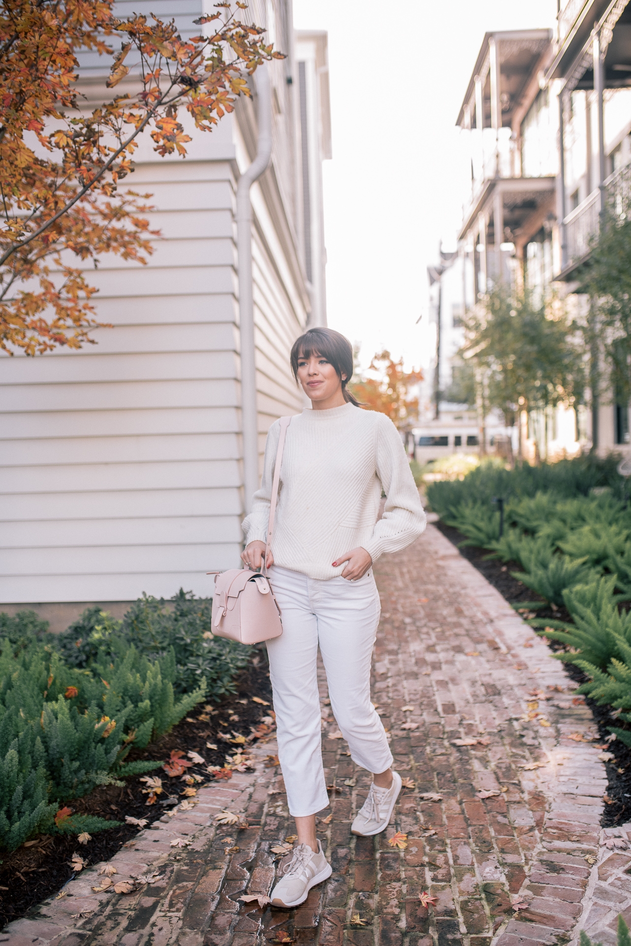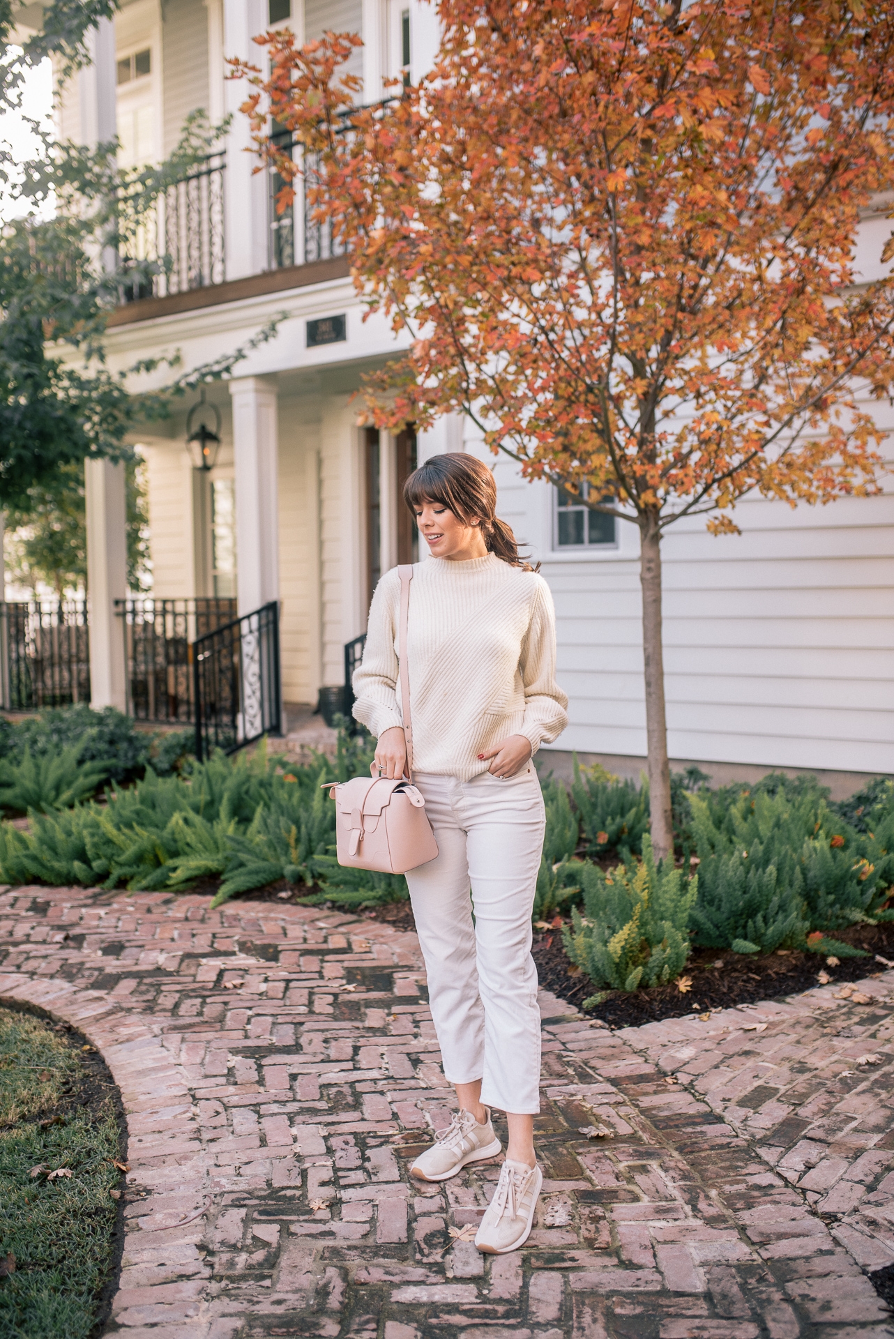 Sweater: Sézane | White Corduroys: Shopbop | Adidas Tennis Shoes: Amazon | Bag: Senreve