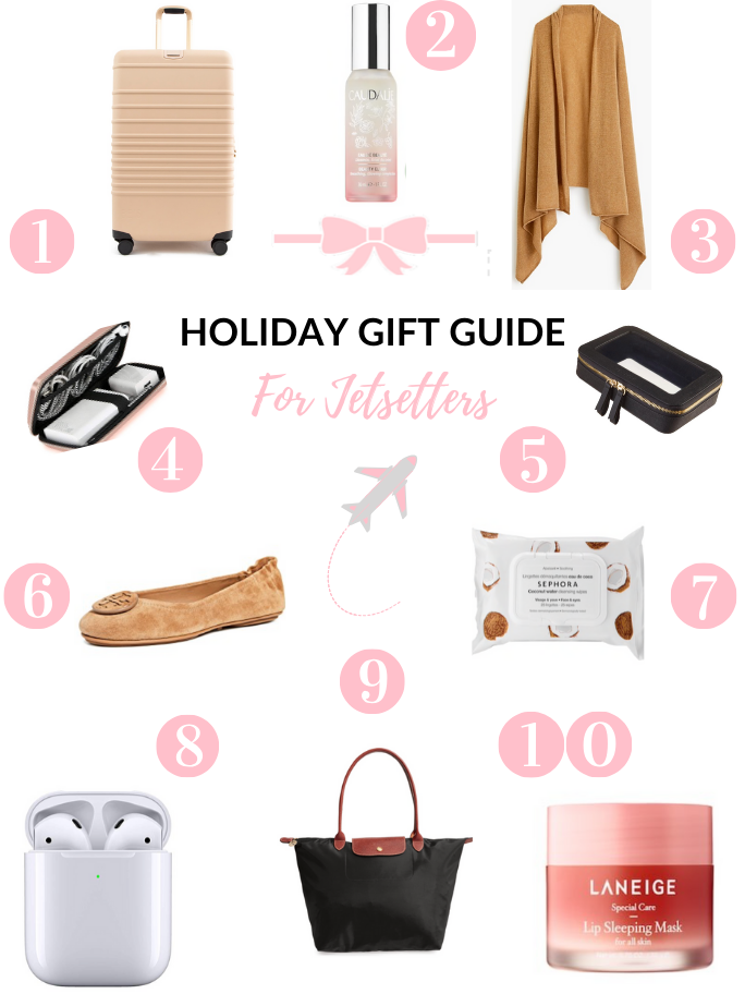 With the holidays comes lots of traveling. From Thanksgiving, Christmas, and New Years this is the biggest and busiest travel season of the entire year. So for todays gift guide, I thought it would be fun to put together a gift guide for jetsetters. This gift guide includes everything she needs to travel well. Whether if you are looking for a loved one who travels a lot for work, a friend who is taking a big trip for the holidays or maybe you yourself are getting ready to set on a big adventure these gift ideas are perfect for all.