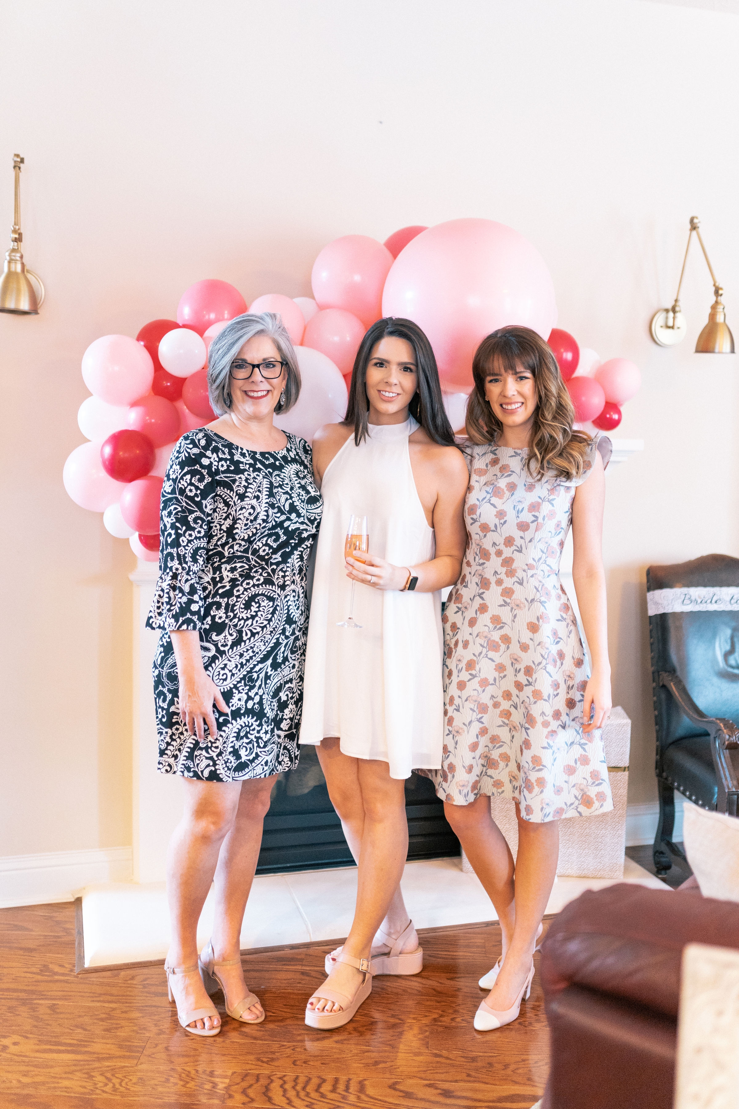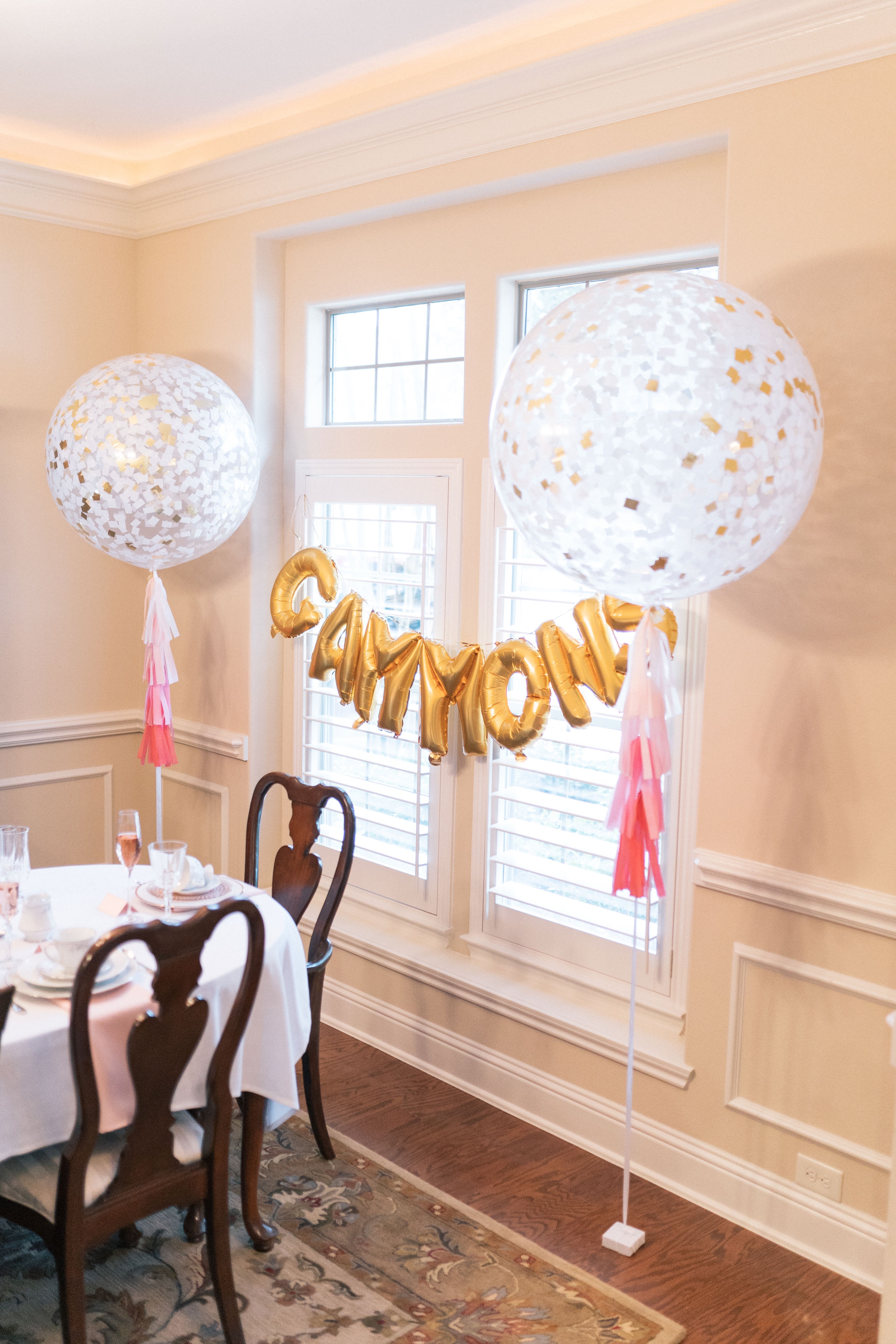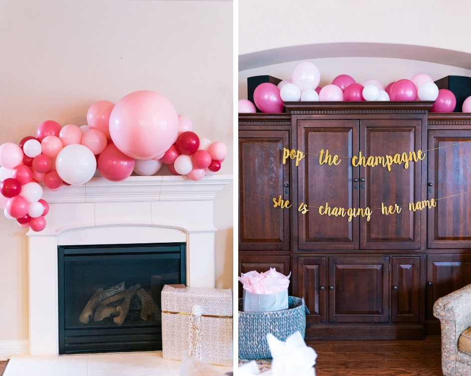 We wanted a cute area that would be fun for the guests to take photos with my sister. So we order a super fun balloon garland from BAB (located in Houston and Dallas) and placed it over the mantel for guest to take photos in front of. We also placed a chair in front of it for my sister to sit and open her gifts. It truly created the perfect photo worthy spot. 🙂