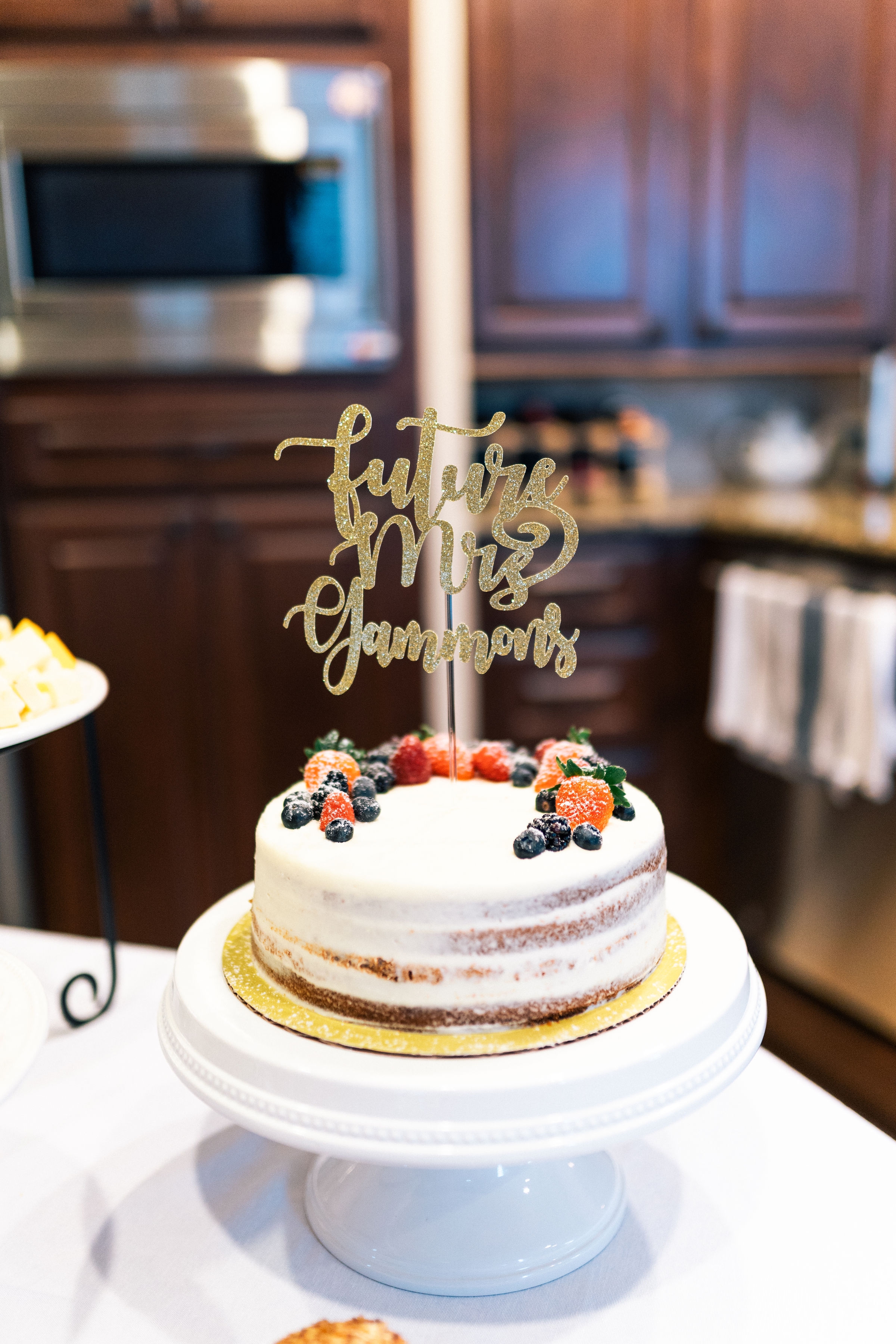 It is so fun to have a cake for everyone but to also have it for the bride to practice cutting the cake. We decorated her gorgeous cake with a personalized topper that I bought here.
