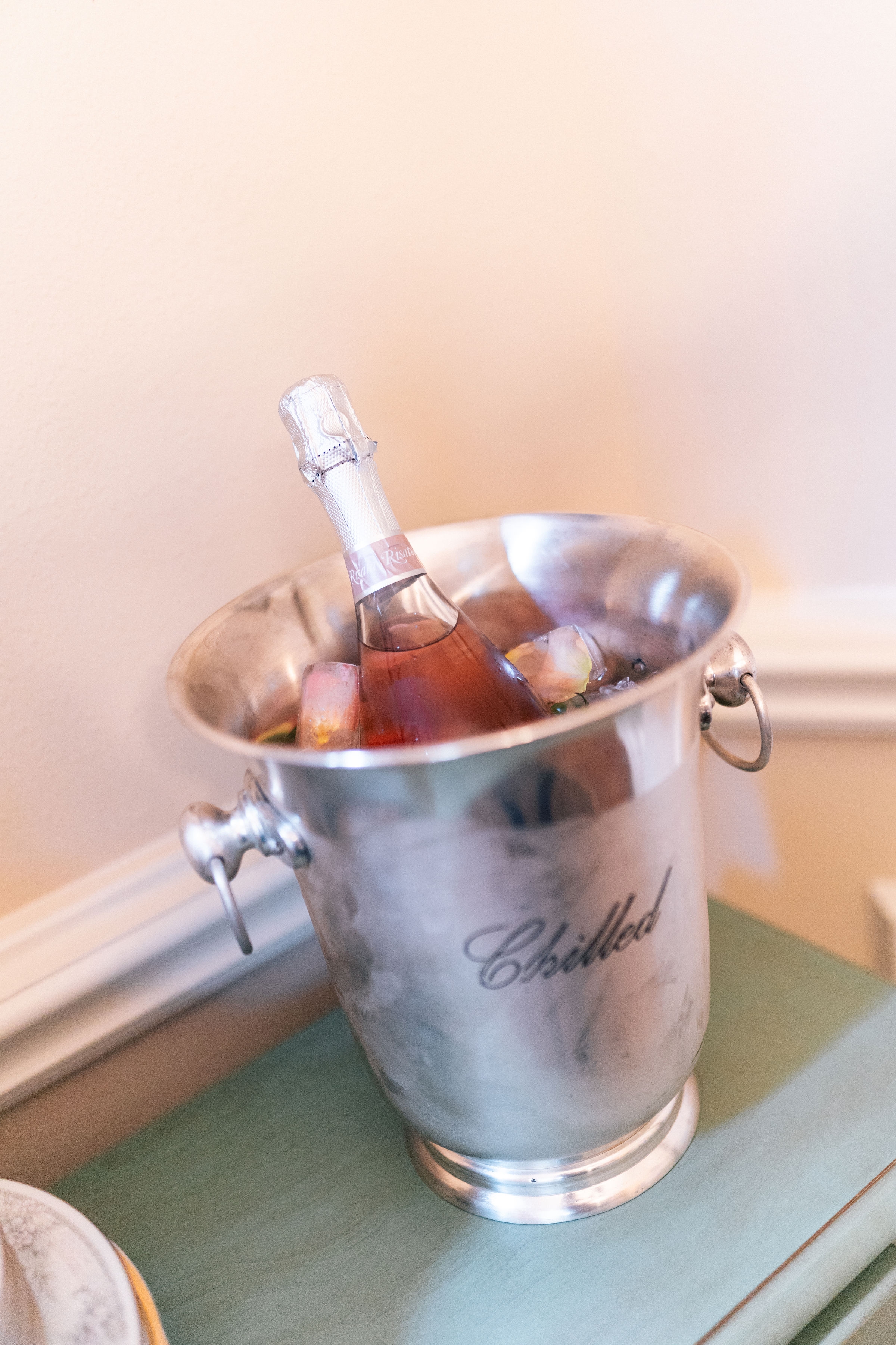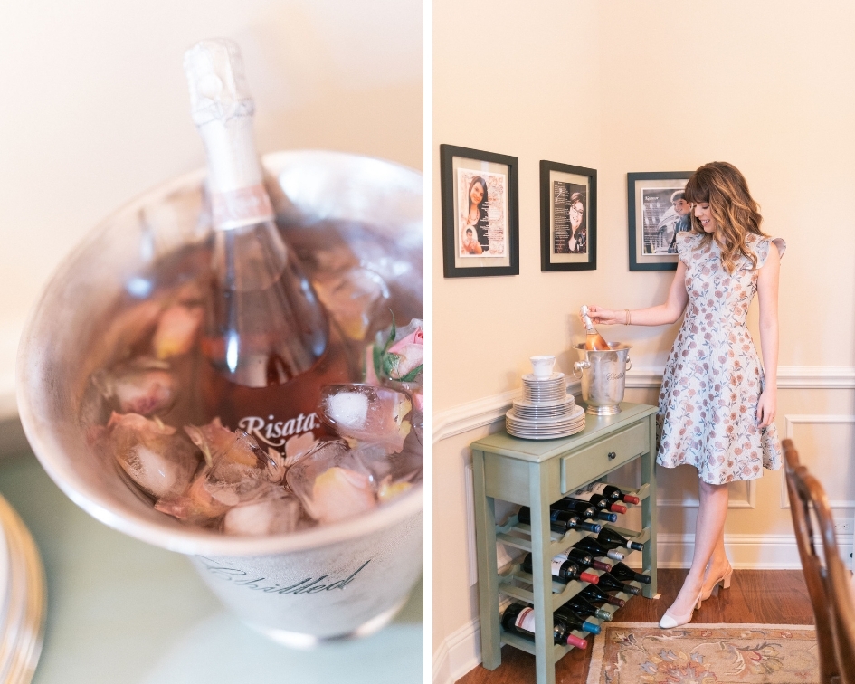 No tea is complete without some sparkling rosé. Before everyone arrived we filled up the glasses at the table with my favorite, Risata Sparkling Rosé. We also placed another bottle by each table in an ice bucket filled with flower ice cubes. We found this idea via Pinterest and thought it would add the perfect touch.