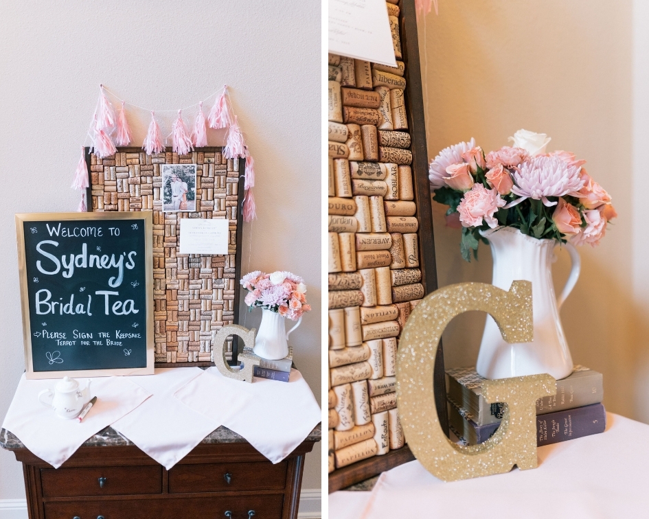 We found an idea online to use a teapot as a keepsake for everyone to sign. So we order a white teapot and a gold oil based sharpie marker and placed it out with a sign asking everyone to kindly sign it. Then after everyone left we baked the teapot in the oven at 350 degrees F for 30min. *Make sure to let the bride know to hand wash her teapot only.