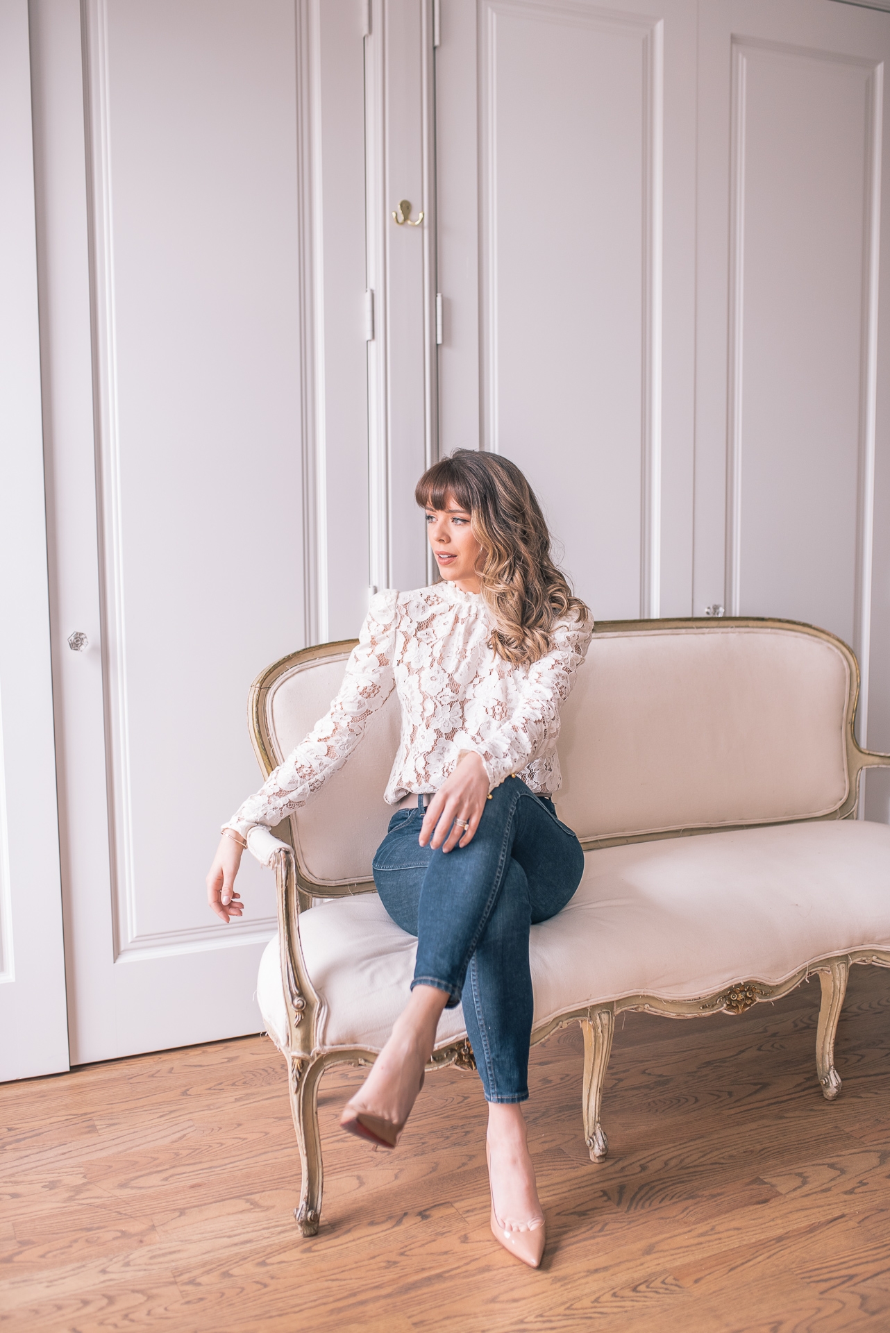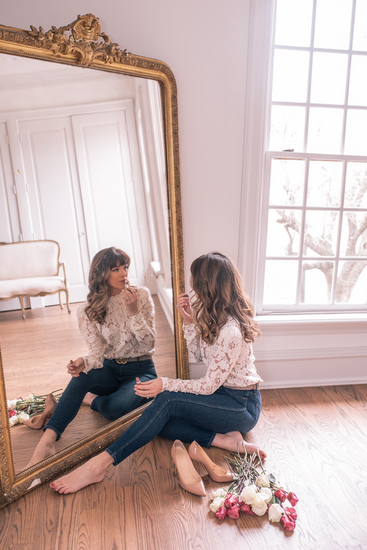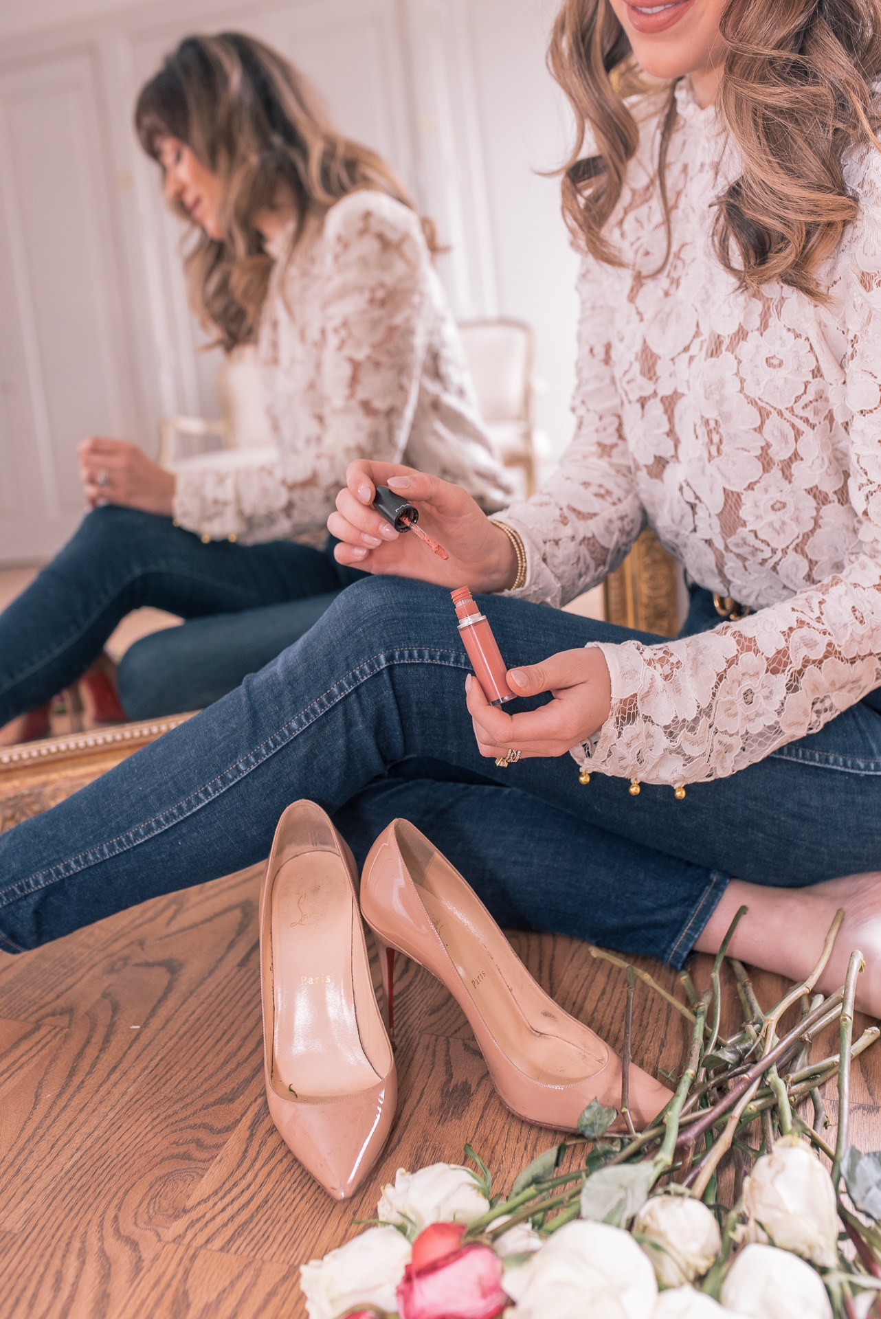 Blouse: Shopbop | Jeans: Madewell | Heels: Louboutin | Belt: Gucci | Lip Color: MAC ( Color- Back To Vogue) |