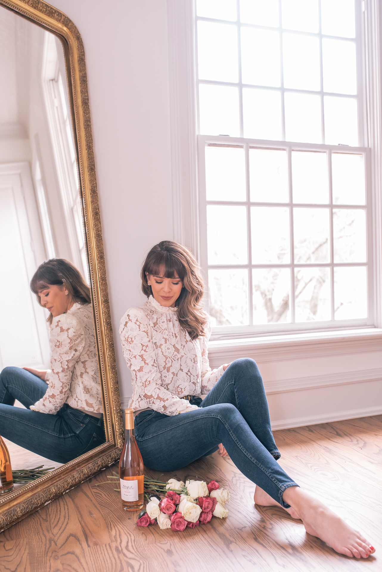 Make a reservation at a romantic spot around town ( our go to is Toulouse ) get dressed up, and head out for a romantic night out together. This outfit here that I am wearing is one of my new go to romantic date night looks.