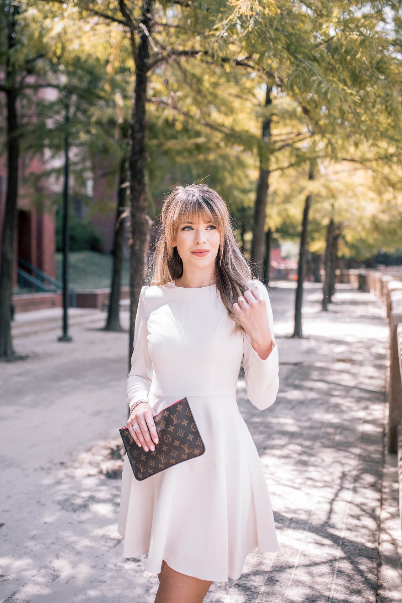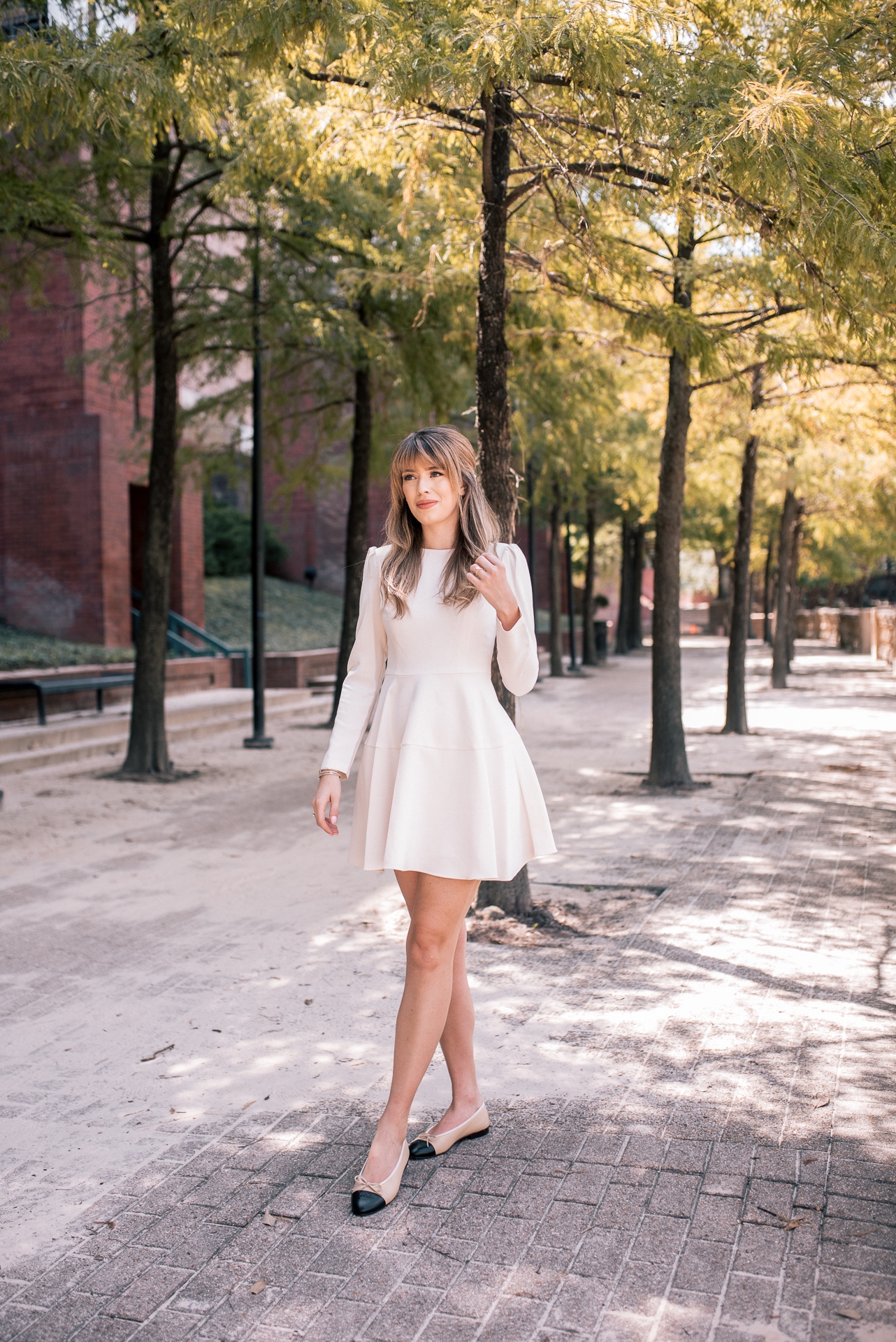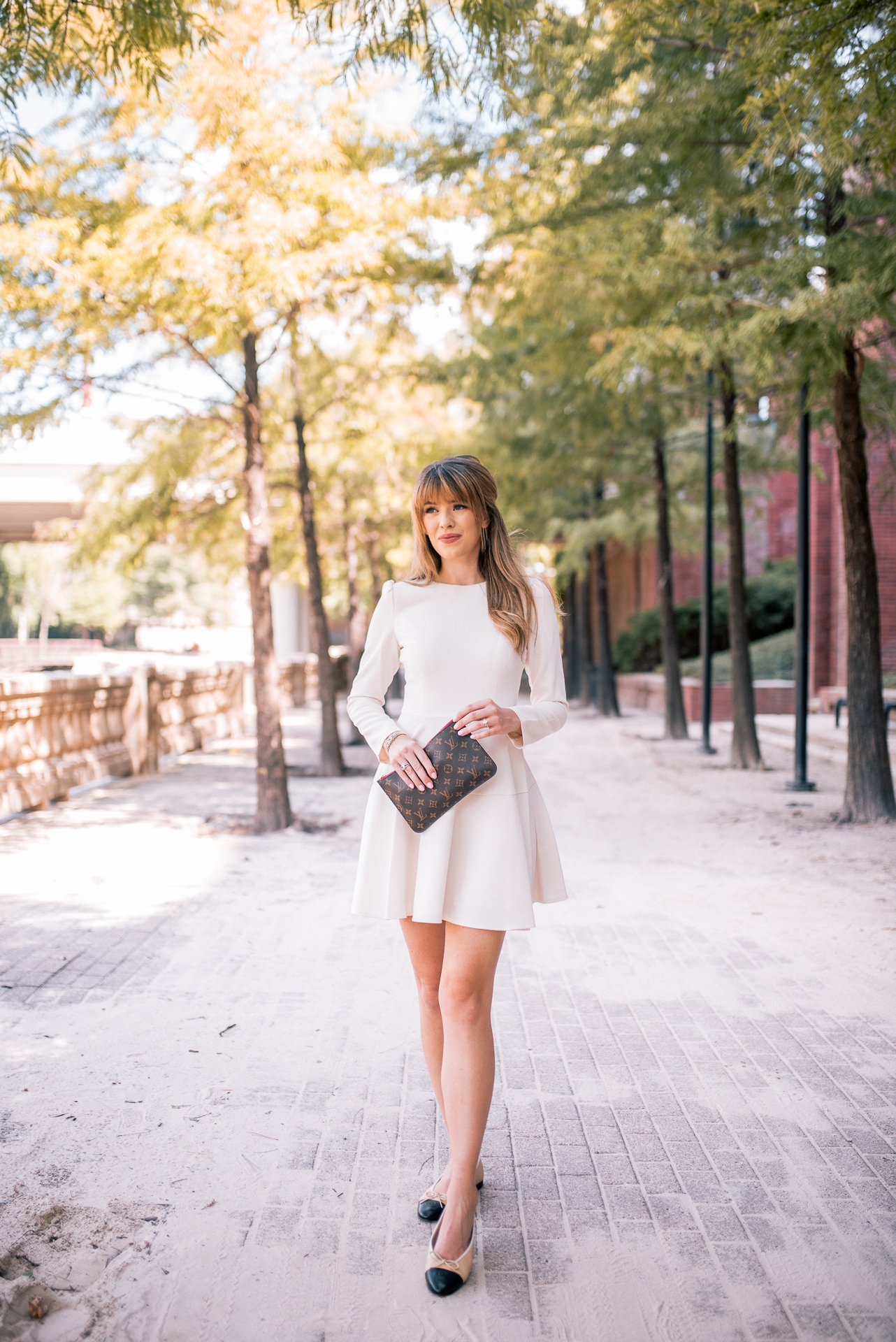 This look I am wearing here is full of my favorite purchases of the month. Between the classic white Gal Meets Glam dress, the pearl barrette, and of course my new Chanel flats. I have had my eye on these flats for over 10 years. They are classics that I have been dreaming of for so long. This past month while in Dallas I finally decided to pull the trigger and SO glad I did. I will definitely a review of them soon.