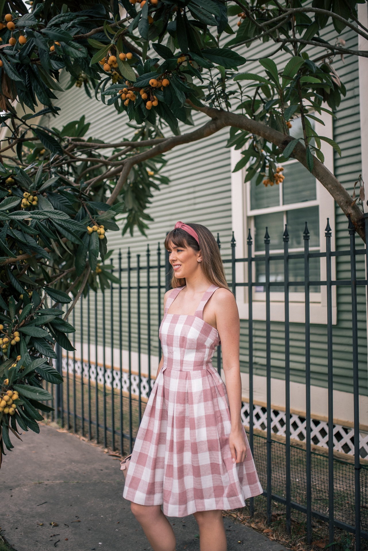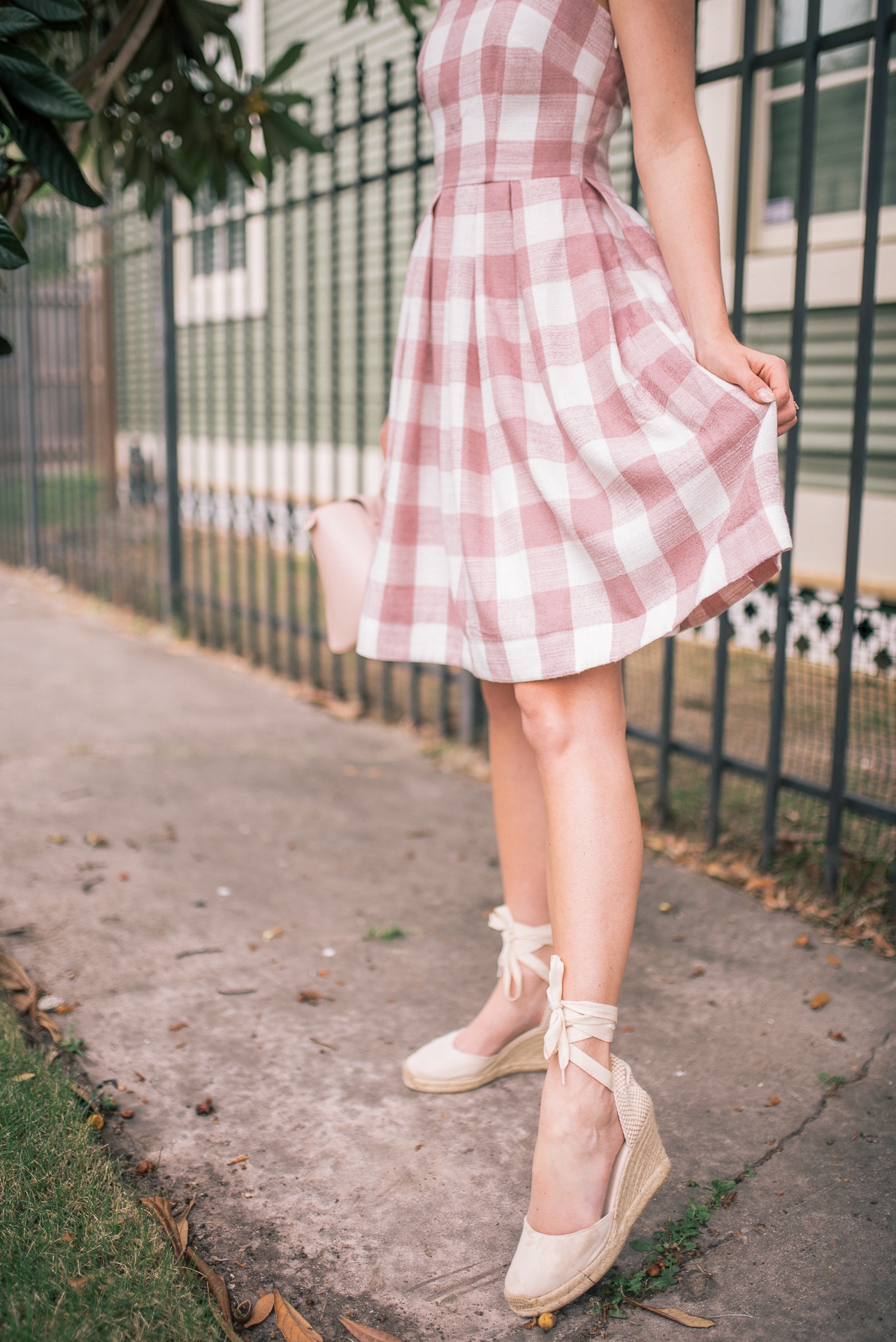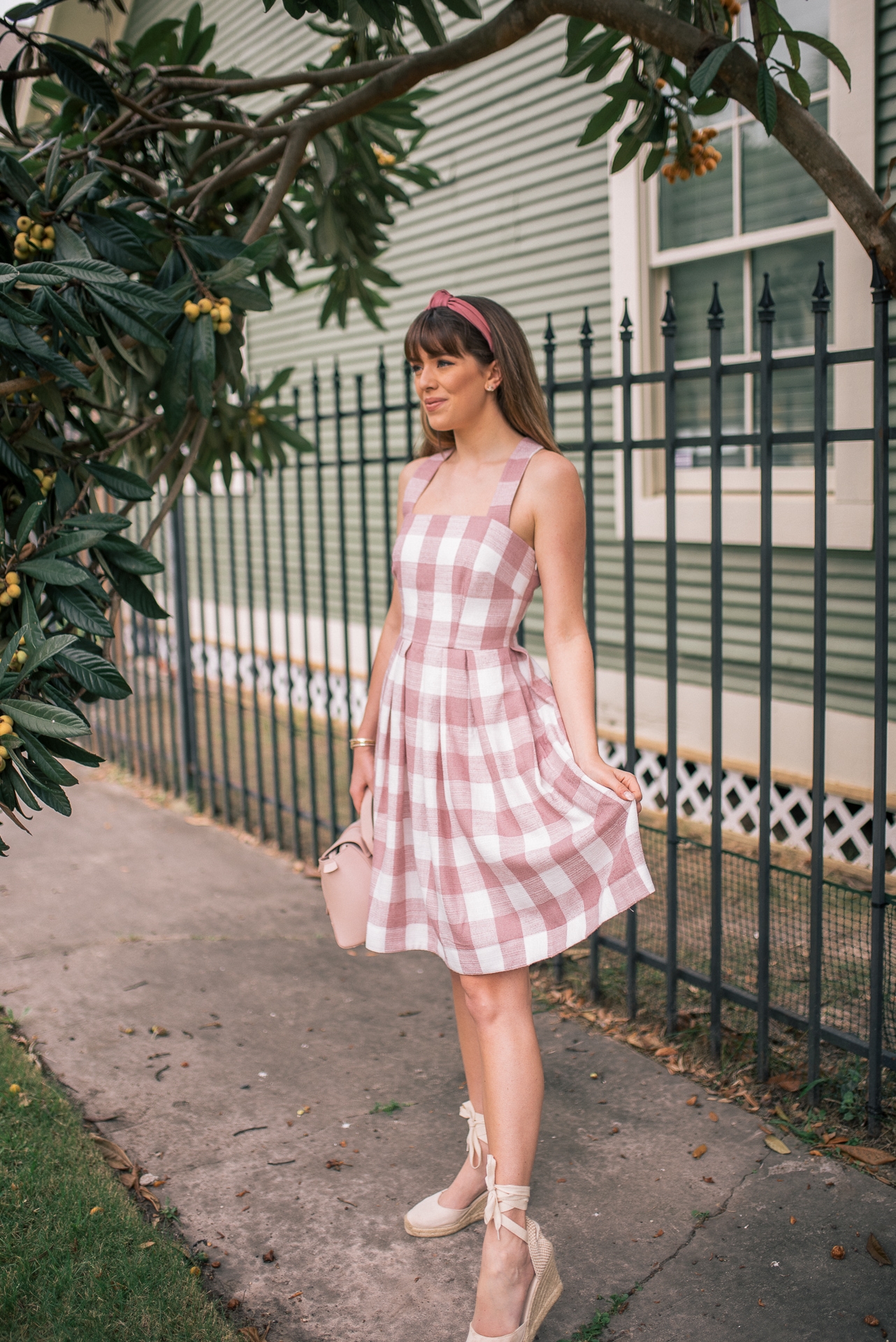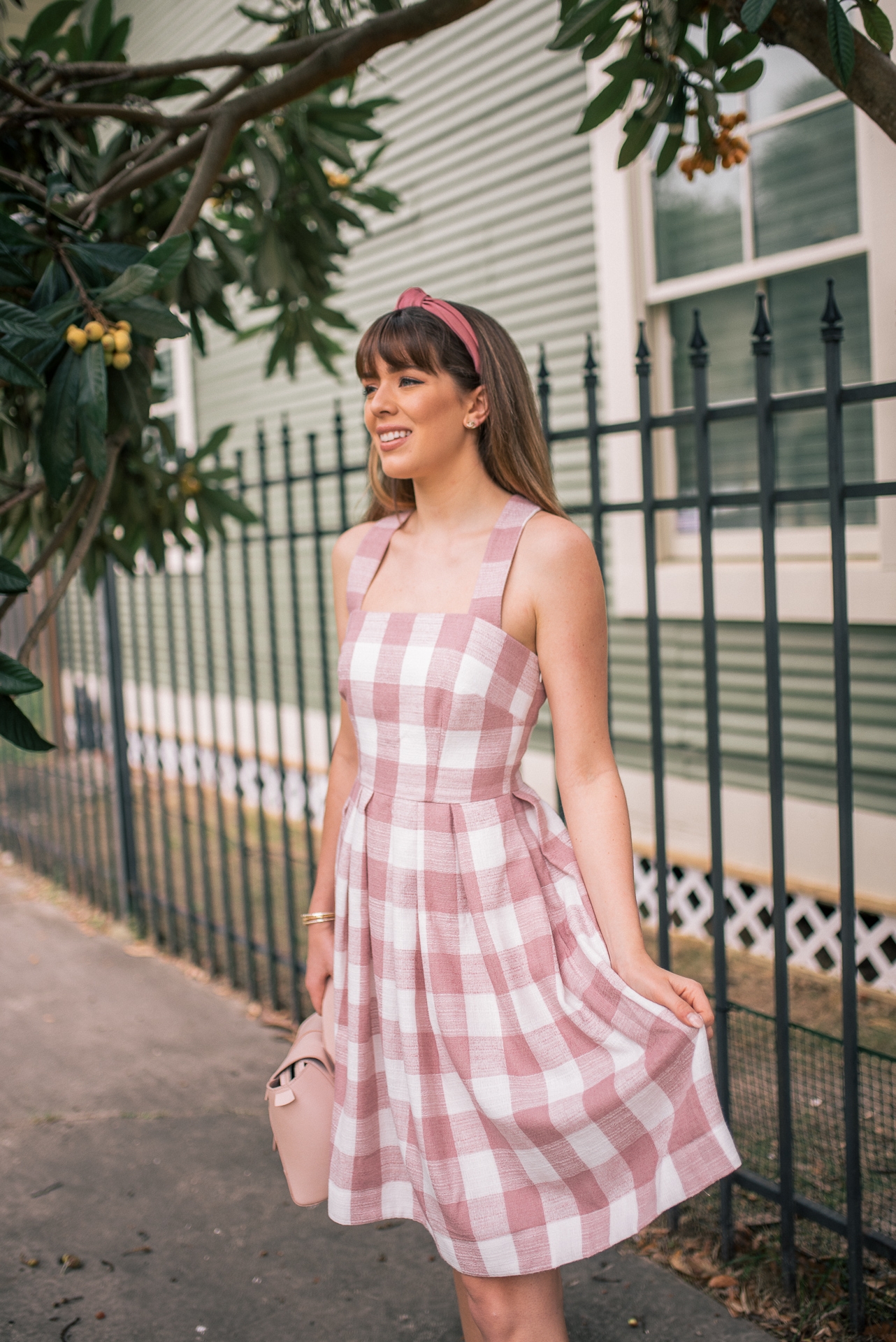 Have you seen a more beautiful dress? I just can’t get over how perfect this white and pink gingham dress is. If you have been following me for some time now, I am sure you know that my favorite dress brand is Gal Meets Glam. The founder, blogger and creator Julia Engel created this truly stunning line of dresses to match her love for feminine style. Last week, she celebrated GMG’s one year anniversary and this dress was apart of the latest collection launched last week. It could not be more perfect for the spring and summer seasons.