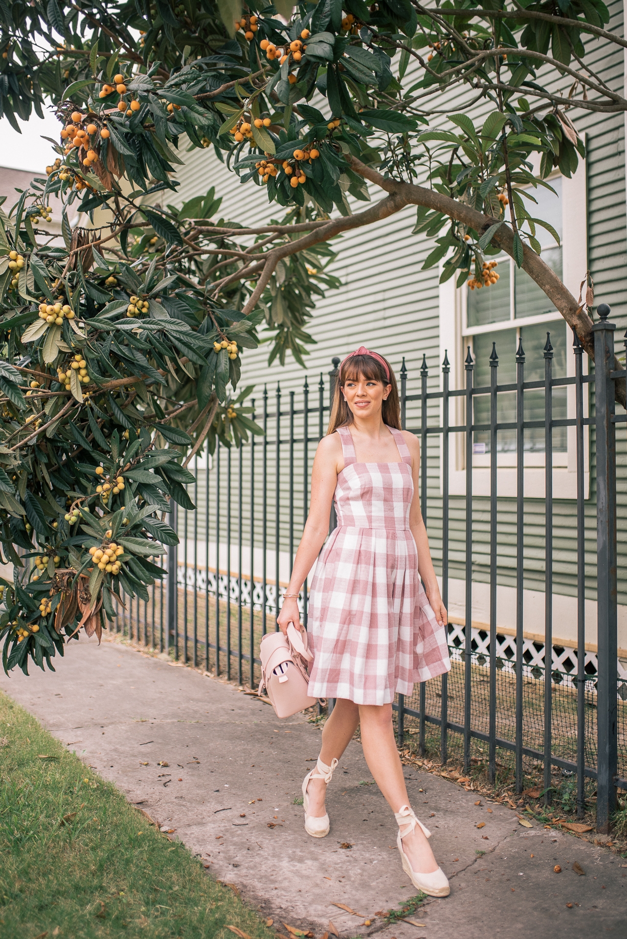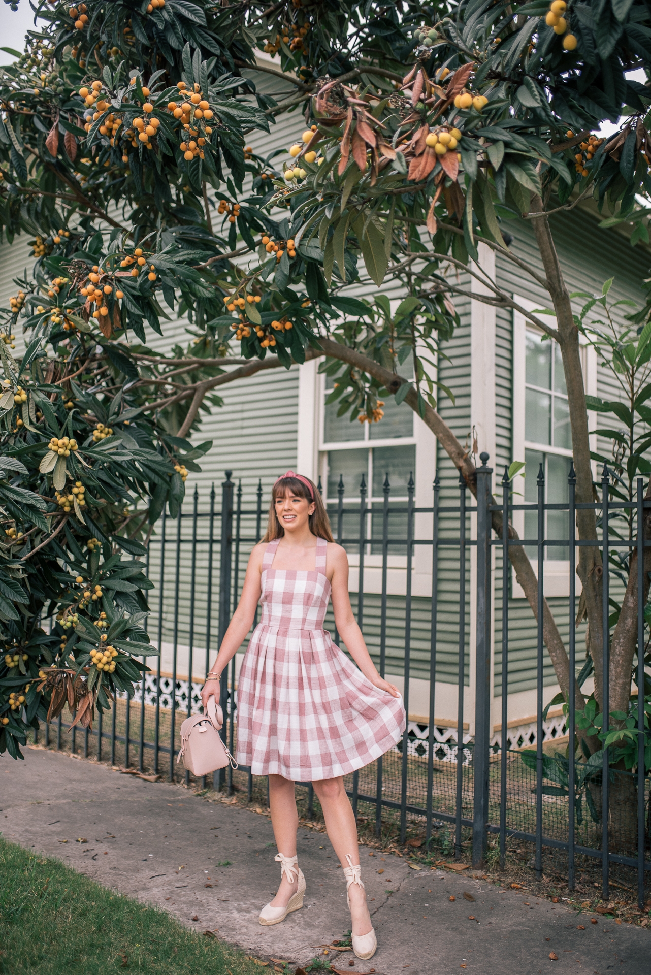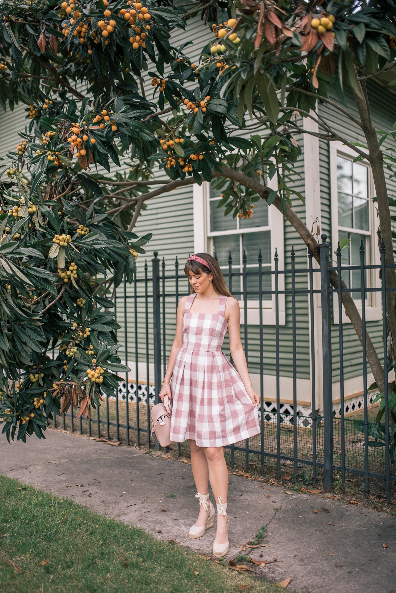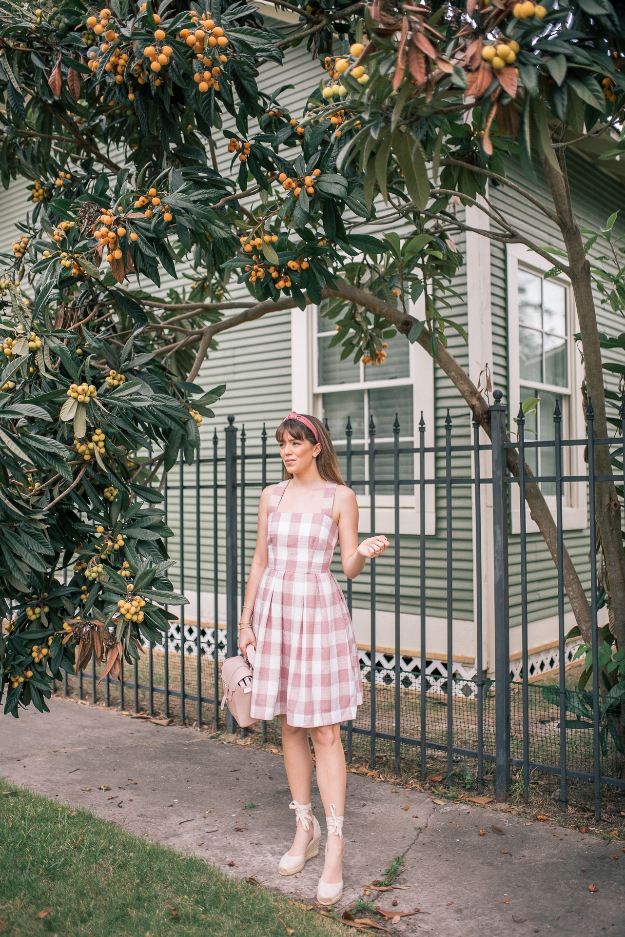 Have you seen a more beautiful dress? I just can’t get over how perfect this white and pink gingham dress is. If you have been following me for some time now, I am sure you know that my favorite dress brand is Gal Meets Glam. The founder, blogger and creator Julia Engel created this truly stunning line of dresses to match her love for feminine style. Last week, she celebrated GMG’s one year anniversary and this dress was apart of the latest collection launched last week. It could not be more perfect for the spring and summer seasons.