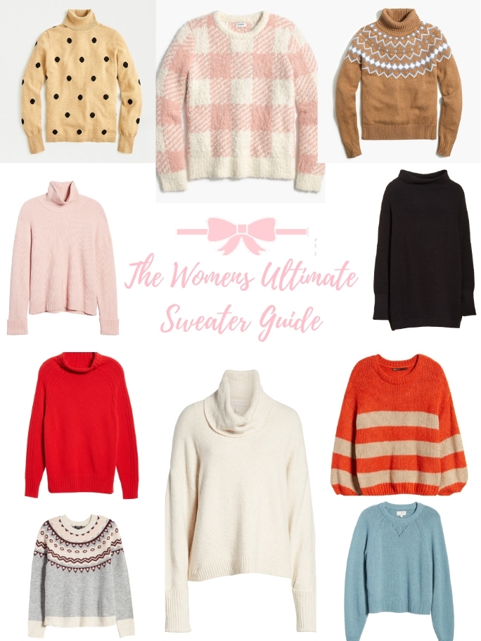 I actually have several of these sweaters in my closet currently. A few of my favorites include: this ottoman slouchy Free People tunic, camel cashmere crewneck sweater, balloon sleeve turtleneck , and this chunky white jumper . Some of the sweaters that are currently in my shopping cart include: this clora red pom pom sweater, everyday cashmere turtleneck sweater in polka dot, and this fair isle turtleneck.
