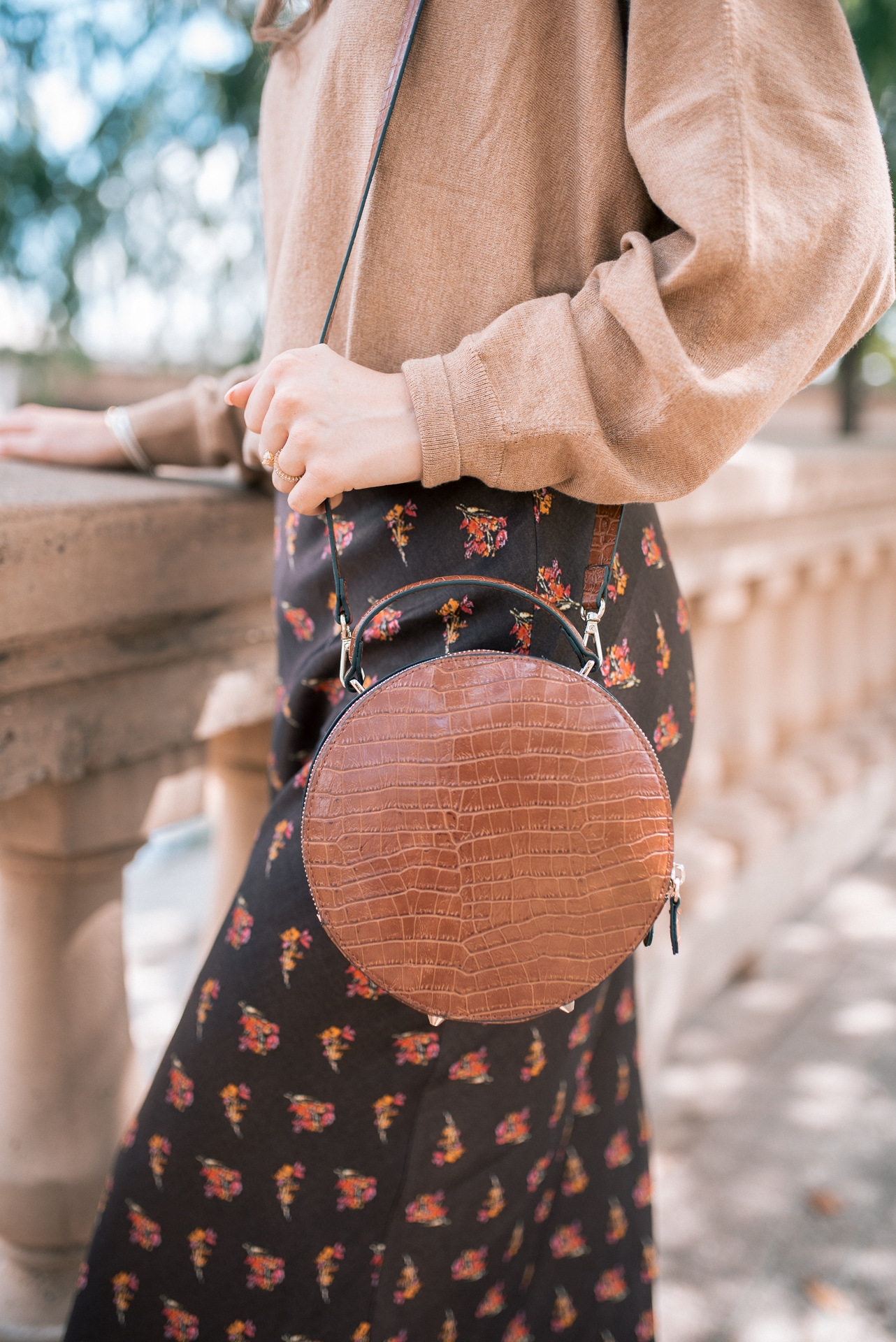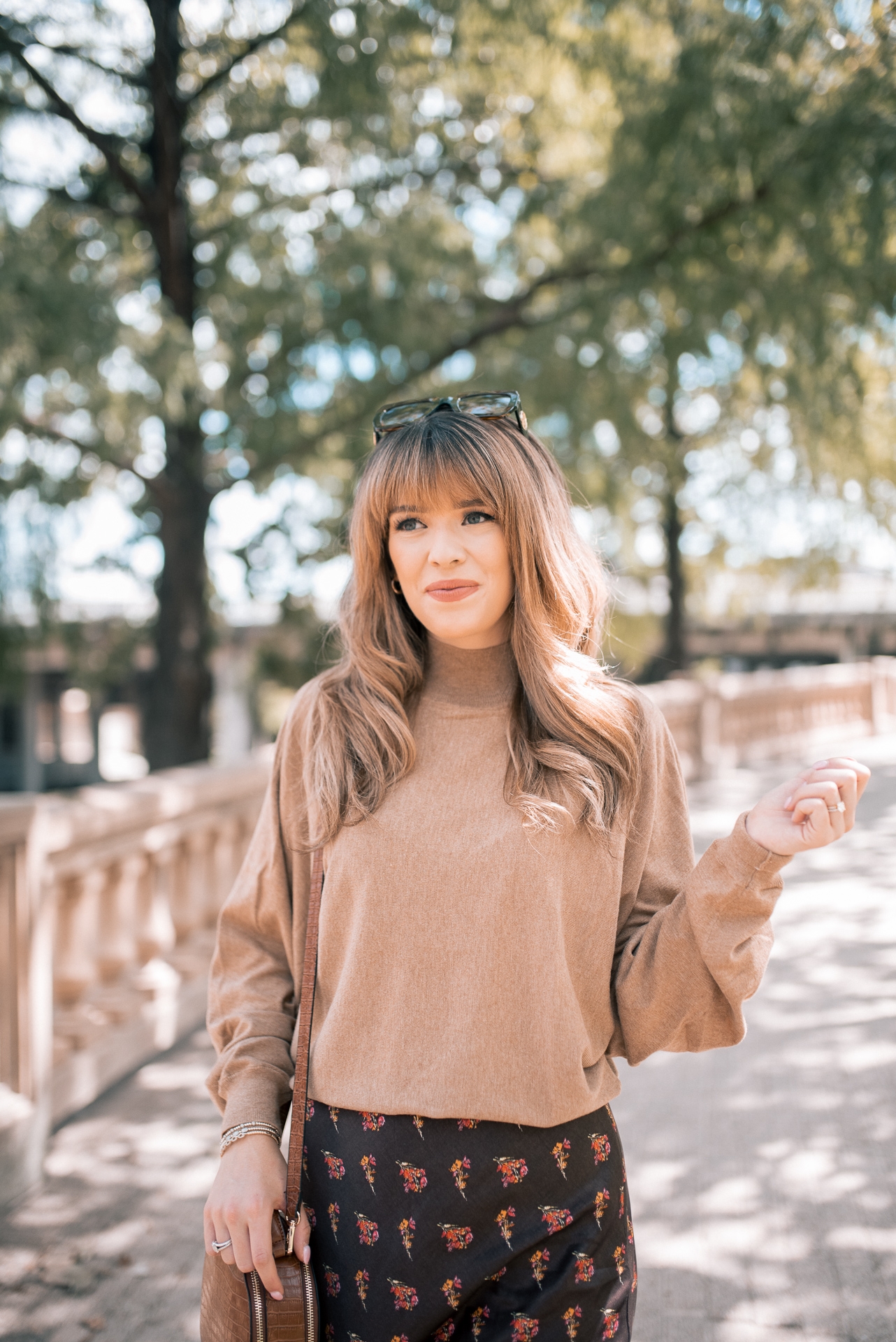 Sweater: H&M | Skirt: (sold out- similar) Nordstrom | Booties: H&M | Purse: H&M | Sunnies: Gucci