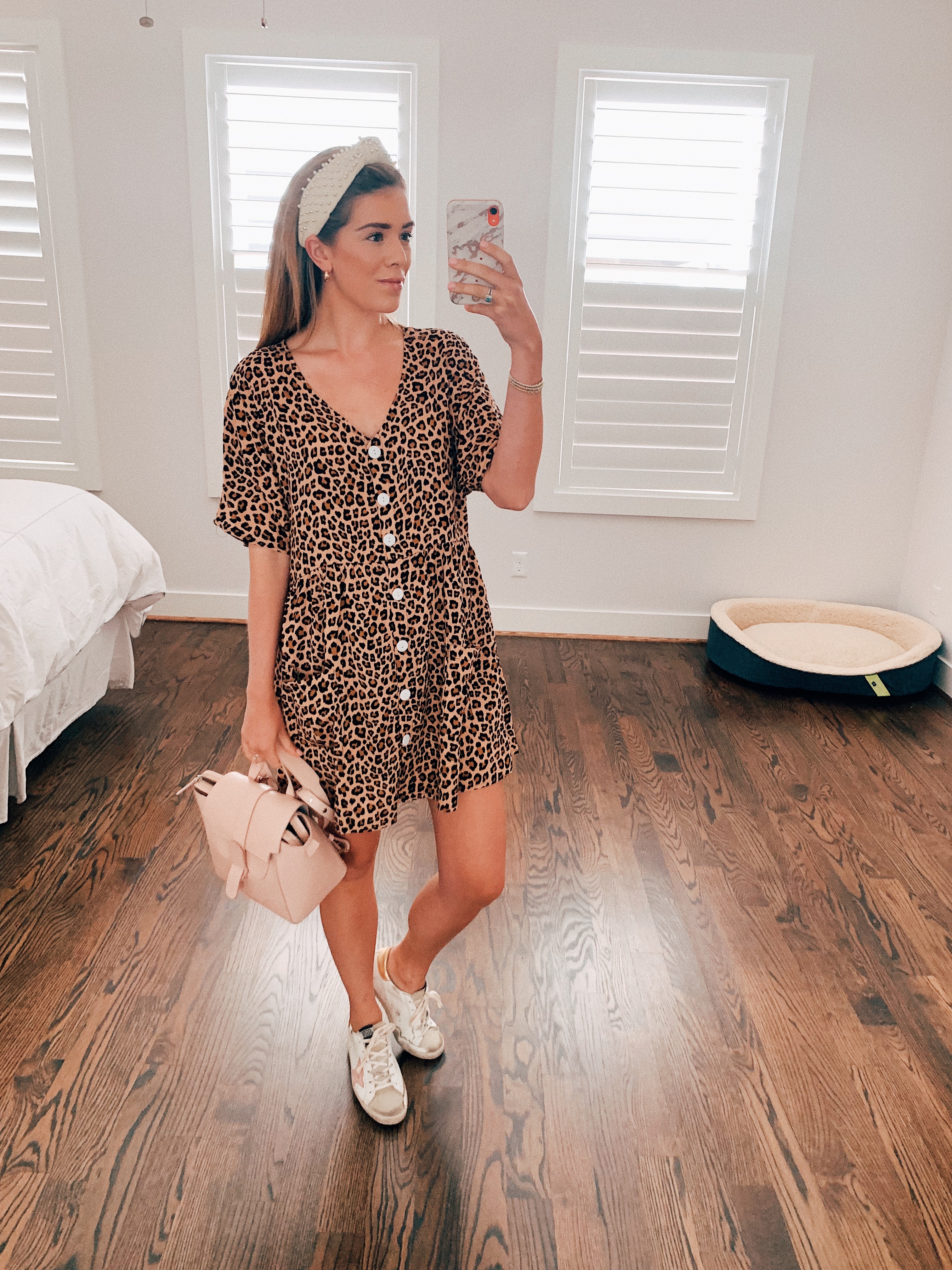 Leopard Print Dress:(note- size up) Amazon | Headband: Lele Sadoughi |Earrings: MANGO