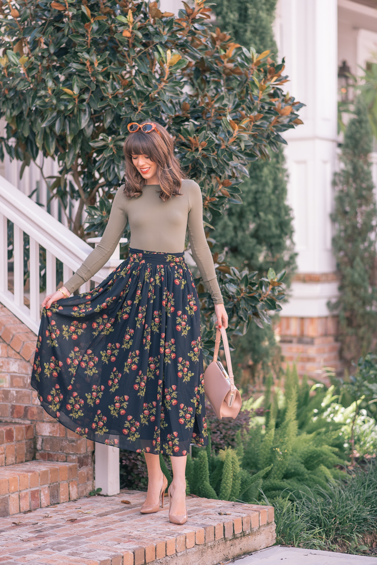 Fall floral skirts are some of my favorites. From mini skirts to maxi you can’t go wrong with a gorgeous floral skirt during the fall season. You can pair it with a turtleneck, blouse or a long sleeve body suit as I did here. There are so many ways to incorporate your floral skirts into your fall wardrobe. Today I am sharing some of the most gorgeous fall floral skirts that would be a perfect addition to any closet.