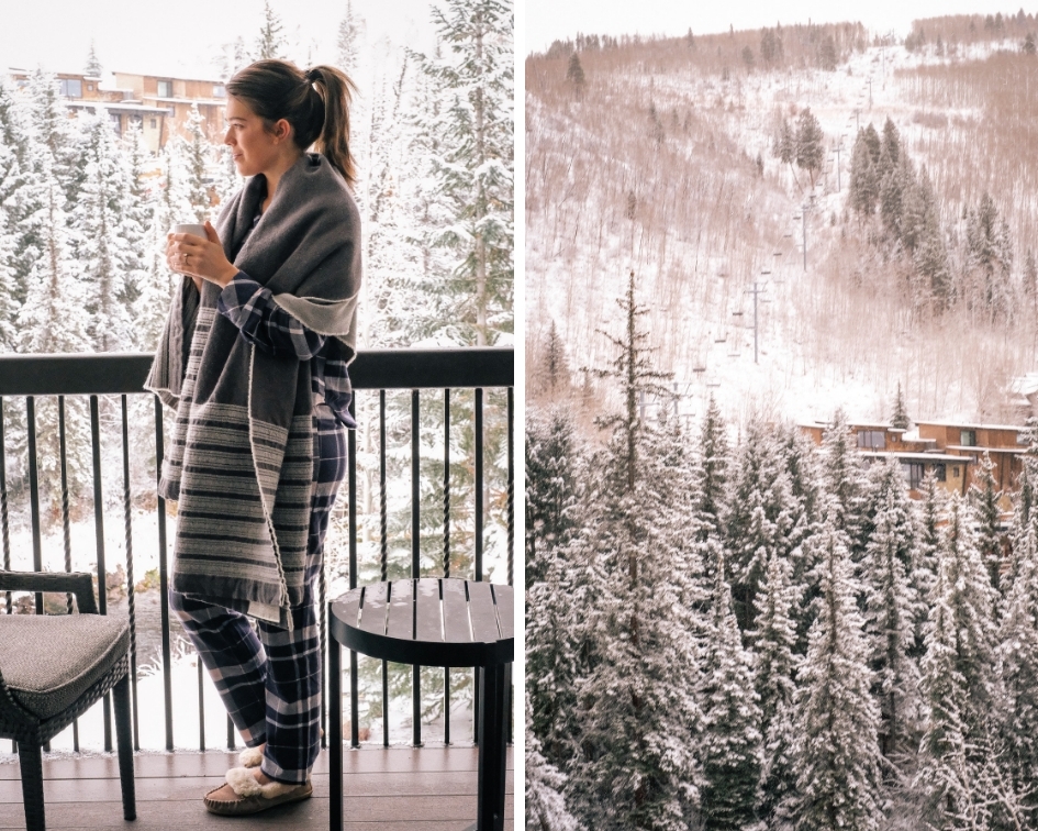 We woke up our our second morning in Vail to the most beautiful snow covered mountains. It had snowed all through the night and continued to show all day long. As we got ready for the day we took some time to enjoy the views on the balcony with a cup of coffee.