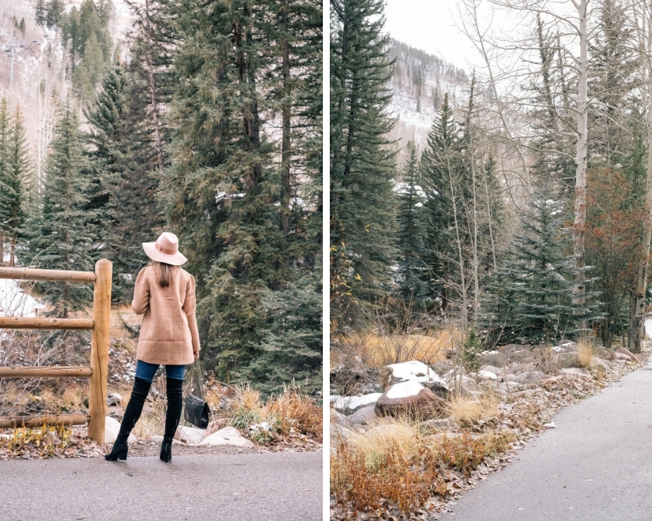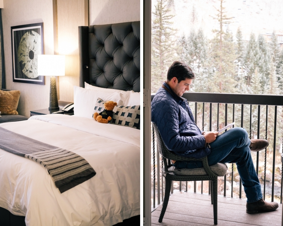 The views just kept getting better and better. Our mountain view room was newly renovated and extremely spacious. Hunters favorite spot during our stay was definitely the gorgeous balcony. After unpacking we quickly bundled up and headed out to explore the hotels property. There is a trail right behind the hotel that takes you directly to Vail Village. We loved using this trail to run on in the mornings.