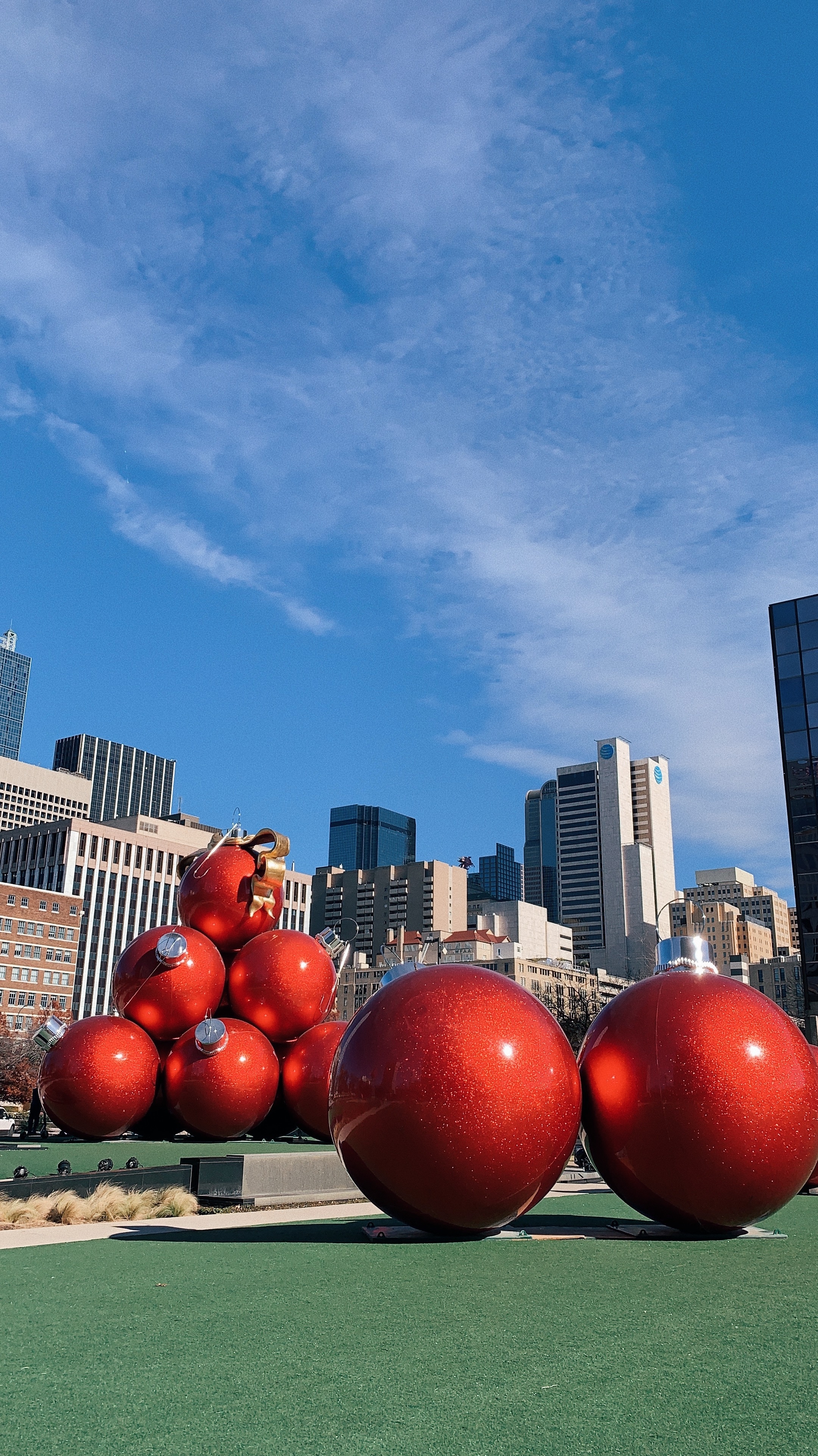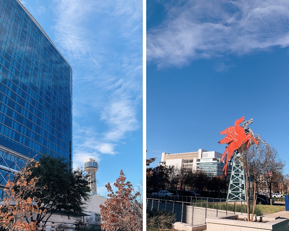 Pulling up to the Dallas Omni you area always greeted with the most spectacular view of downtown. During the holidays, your view becomes even more incredible with their amazing holiday decor located all around the property. My favorite by far is the giant ornament instillation located right out front.