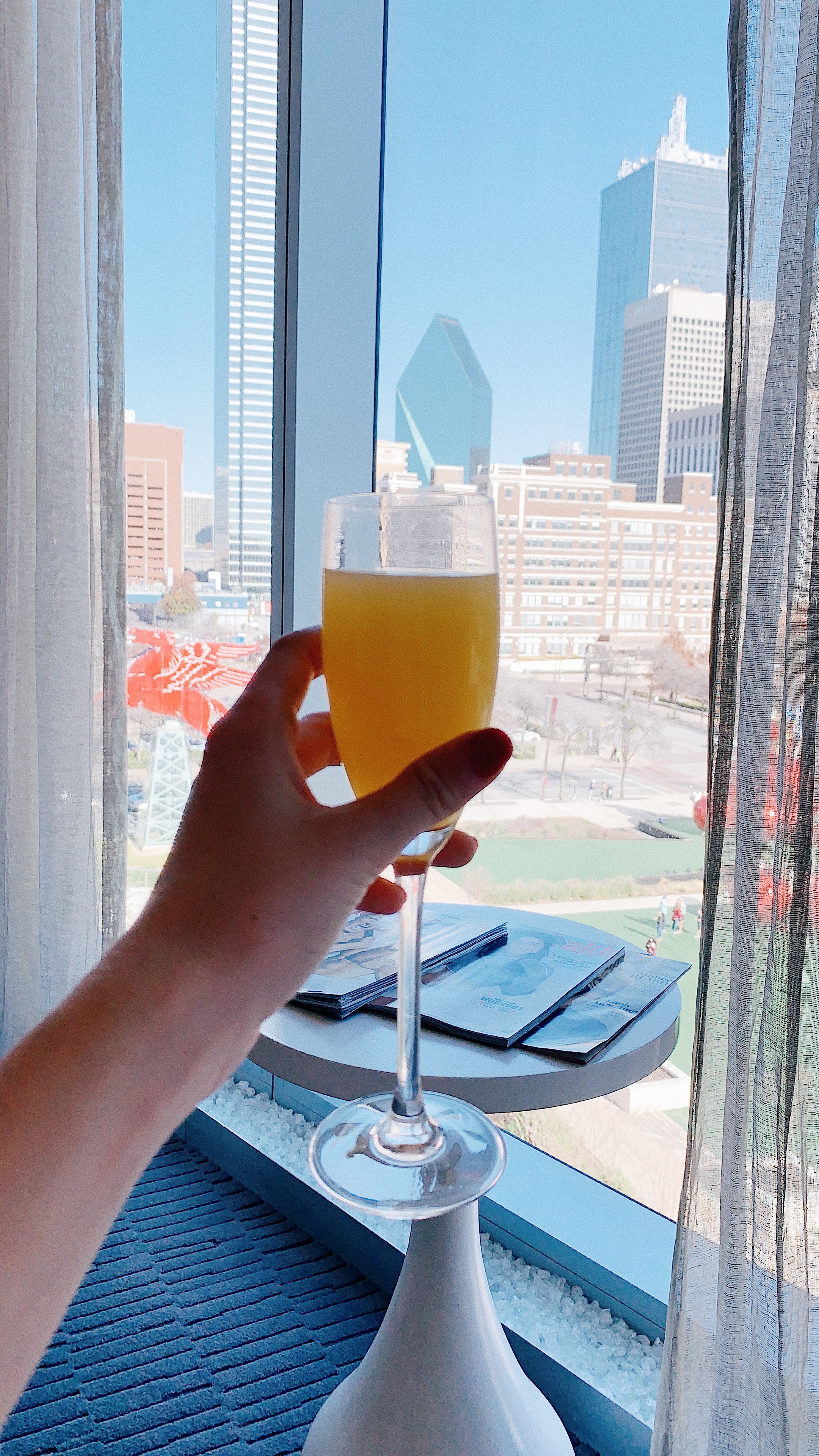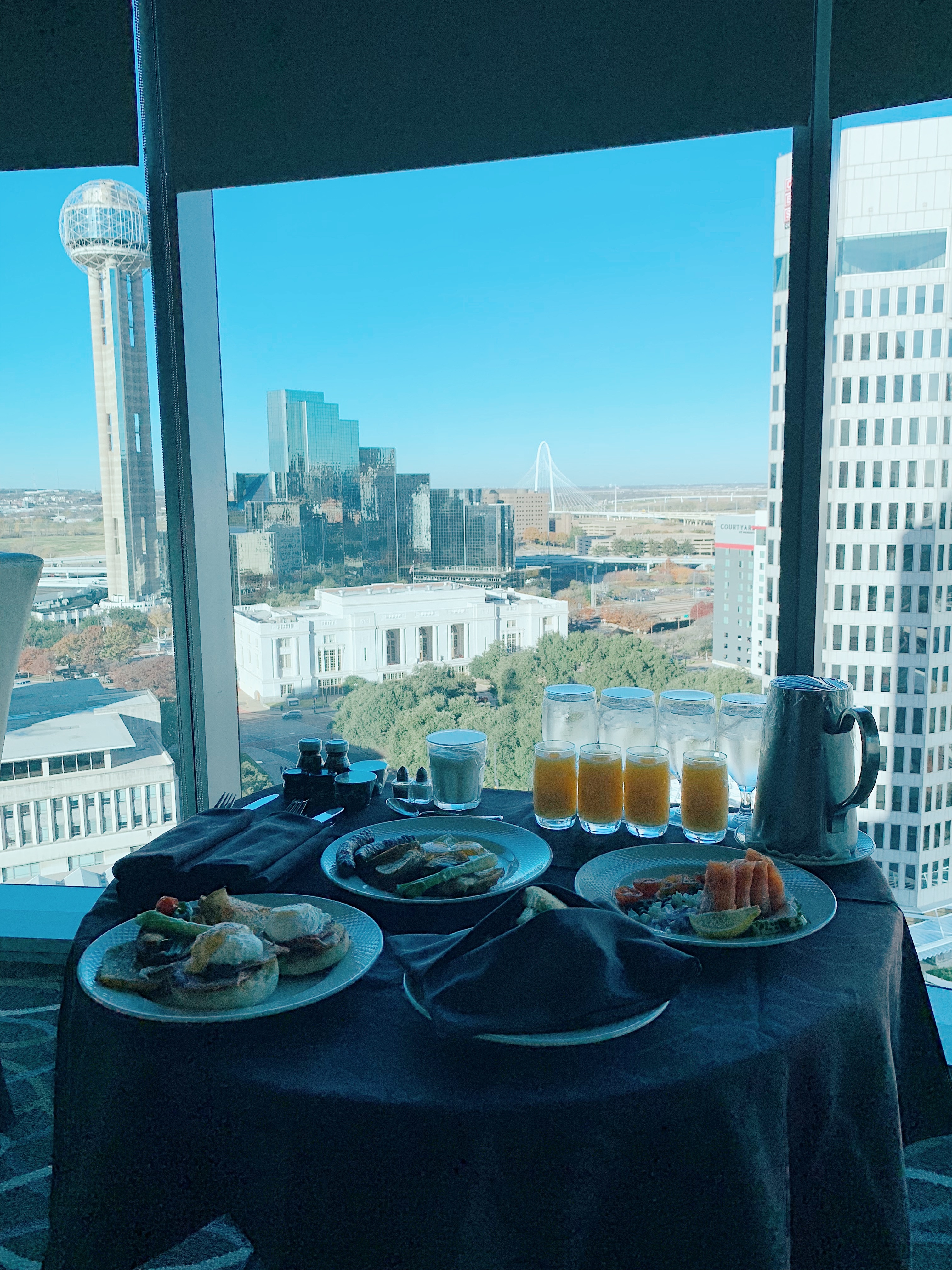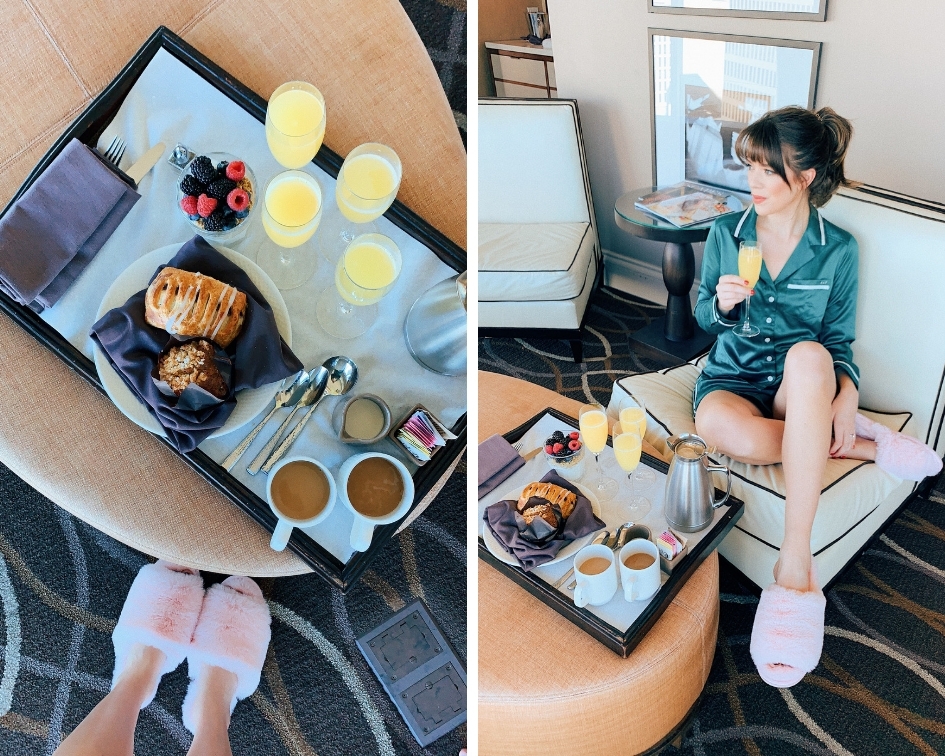 Our first morning was spent enjoying room service and the stunning views. One of my favorite things about the Omni Dallas is their floor to ceiling windows in each room. There truly is no better few of the city than from the Omni. After breakfast we headed down to the Mokara Spa where we each enjoyed a spa service paired with complimentary mimosas and champagne. This was my second time receiving a facial from the Mokara spa and it did not disappoint.