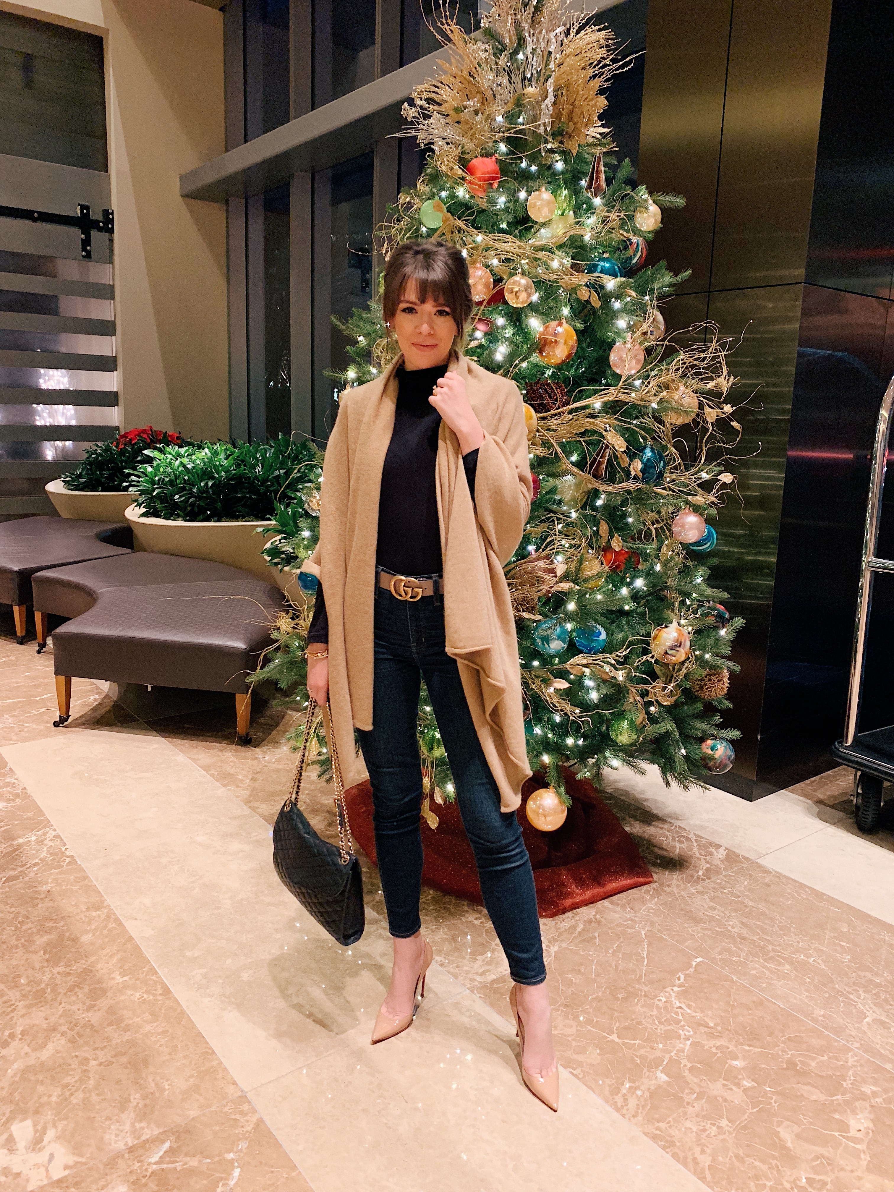 After kicking of the evening with the perfect holiday cocktails we got ready and spent some time exploring the property and the stunning Christmas decor. In the Lobby, you will find a tree around every corner. Of course, we could not resist taking photos in front of all of them. 😉